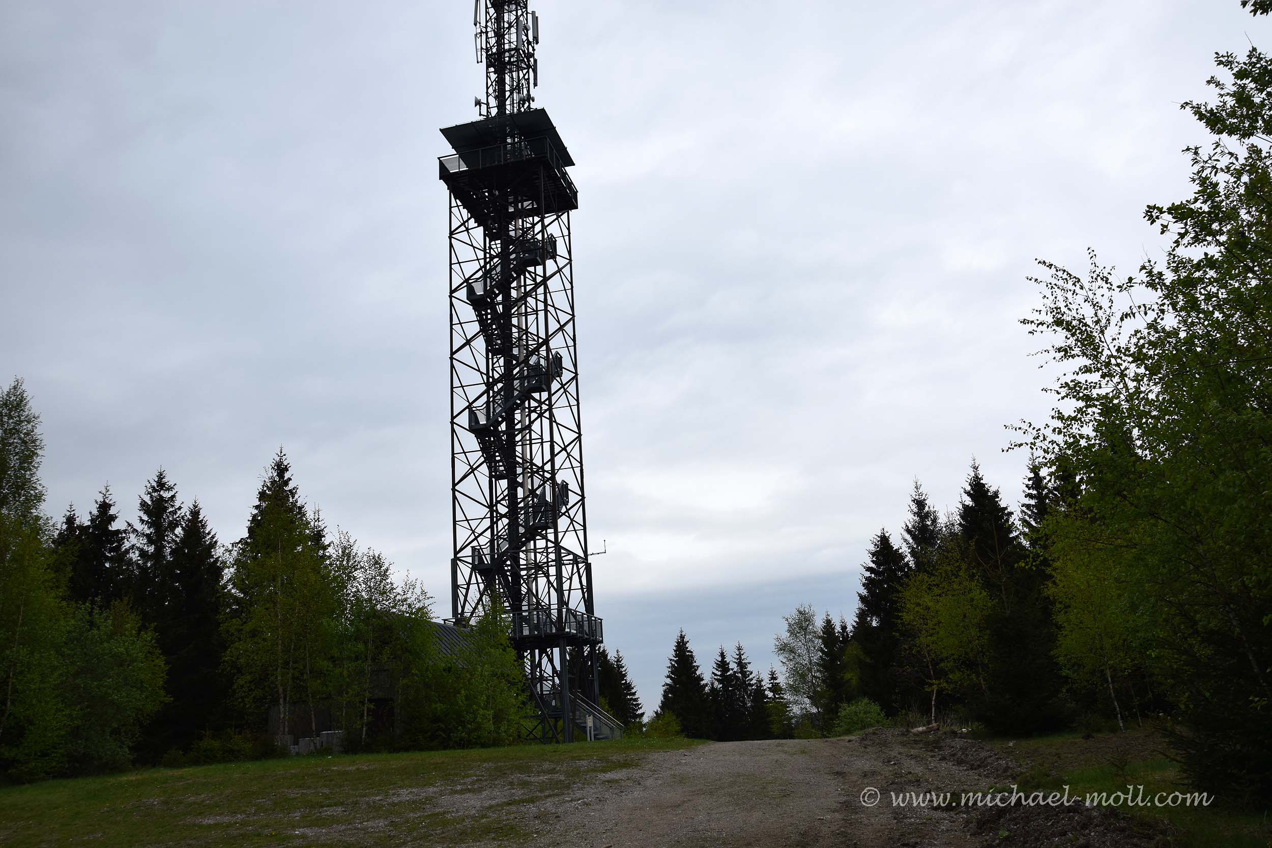 So gingen wir hinab in das Tal, wo die Harzer Schmalspurbahn am Bahnhof Sophienhof anhält, wurden gleich auch noch von der Dampflok überholt und wanderten ziemlich alleine bis zum Stempel 50 (Walzenhütte). Fünf Kilometer waren das vom Parkplatz aus und den höchsten Punkt hatten wir damit noch nicht. Dieser folgte nämlich weiter östlich mit dem Stempelkasten 51 auf über 600 Metern Höhe. Den Carlsturm, nach dem der Stempelkasten benannt ist, haben wir uns jedoch gespart. Einerseits waren wir so langsam erschöpft und andererseits war es windig und kalt. Im geschwitzten Zustand brauchten wir das nicht unbedingt. So gingen wir zum Parkplatz zurück, wo noch der dritte Stempel (Nr. 97 – Ziegenalm) auf uns wartete. Und wie geplant fuhren wir noch zum letzten Stempel des Tages, der sich mit Nummer 48 am Stierbergsteich befindet. Danach war es dann aber auch gut und wir ziemlich erledigt. Wir wollen ja nicht vergessen, dass es auf den letzten Kilometern auch noch regnete und das Wetter an dem Tag ohnehin nicht mehr ganz so schön war wie im Vortag. Zum Supermarkt gingen wir an dem Tag nicht mehr zu Fuß, sondern fuhren erst dort hin und dann mit den Einkäufen auf unsere reservierte Stellfläche am Wohnmobilstellplatz Braunlage.