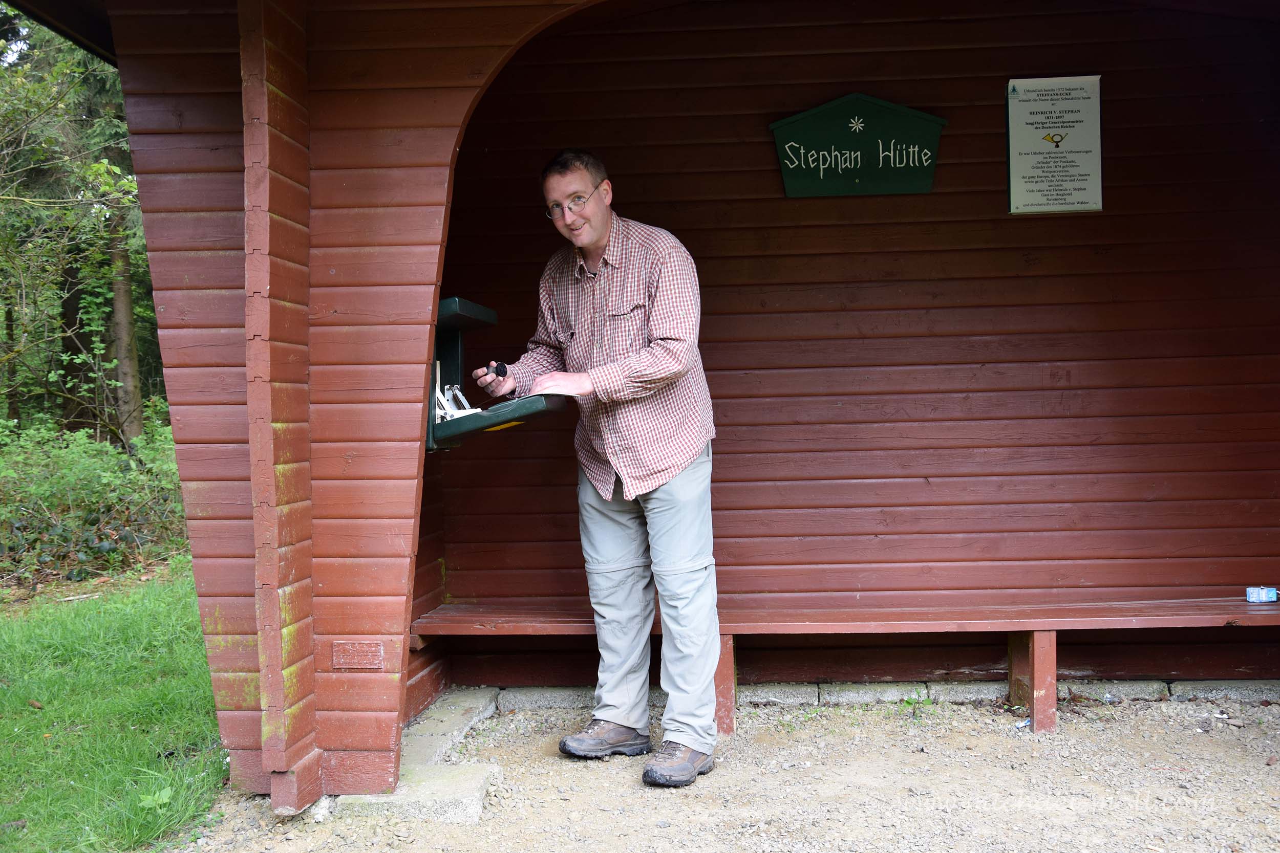So stempelten wir unseren ersten Stempel im Jahr 2015 in den Pass ohne uns verständigen zu können. Schnell zogen wir weiter zu den Stempelstellen 141 (Lasfelder Tränke) und 142 (Handwerkers Ruh) ohne eine nennenswerte Pause zu machen. Um wieder zum Parkplatz zurückzukehren, mussten wir erneut an der Kaysereiche vorbei, aber mittlerweile waren die Feierlustigkeiten dort verschwunden. Wahrscheinlich beschallten sie nun eine andere Schutzhütte.