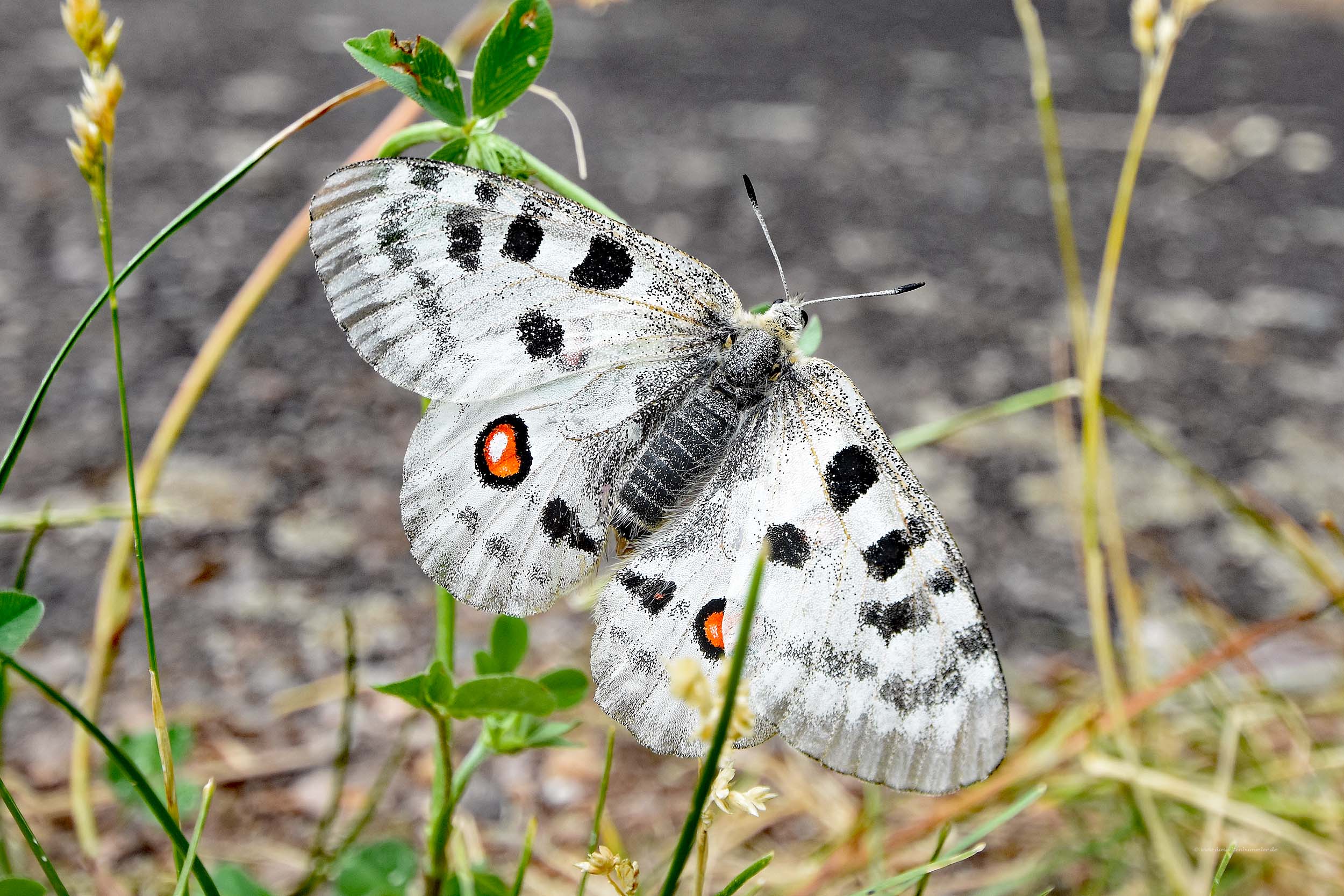 Apollofalter mit Rüssel