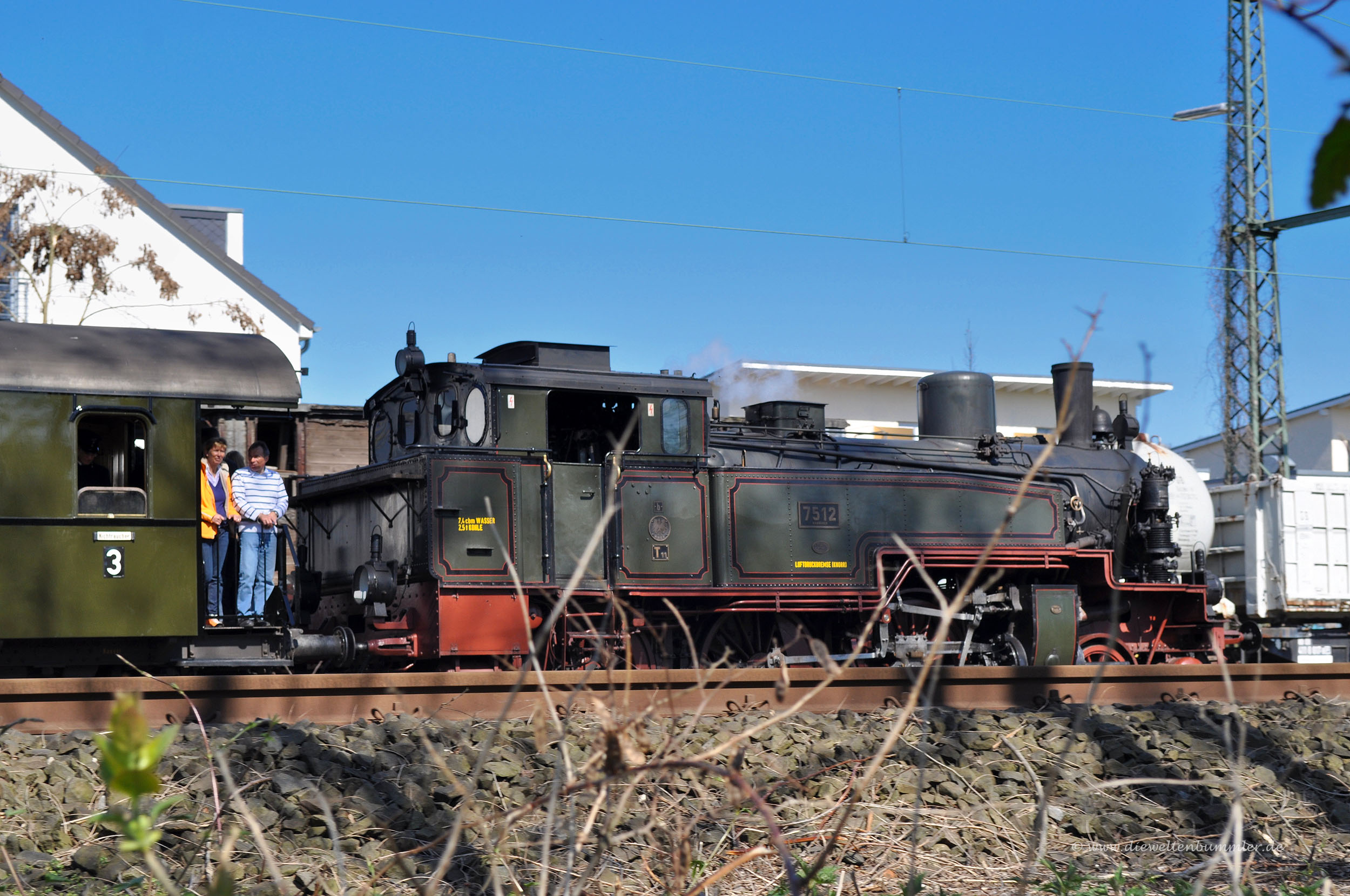 Heute kommen wir kostenlos über die Brücke und biegen auf der anderen Ruhrseite – und somit auf Bochumer Stadtgebiet – nach links ab. Hier gilt für die nächsten Meter besondere Vorsicht, da die Straße sehr eng ist und es keinen richtigen Fußweg gibt. Vor einem kleinen Parkplatz auf der linken Seite überqueren wir eine Brücke, die die dortigen Bahngleise überspannt. Dahinter wenden wir uns nach rechts und folgen dem Fußweg zur Ruhr. Die Ruhrauen durchwandern wir entweder rechts auf dem Schotterweg (weniger Radfahrer) oder links (näher an der Ruhr) auf der Asphaltstrecke. Beide Wege treffen sich direkt an der Ruhr vor einer engen Unterführung. Hinter diesem Tunnel lohnt sich für Interessierte ein kleiner Abstecher nach rechts zum Eisenbahnmuseum Bochum.