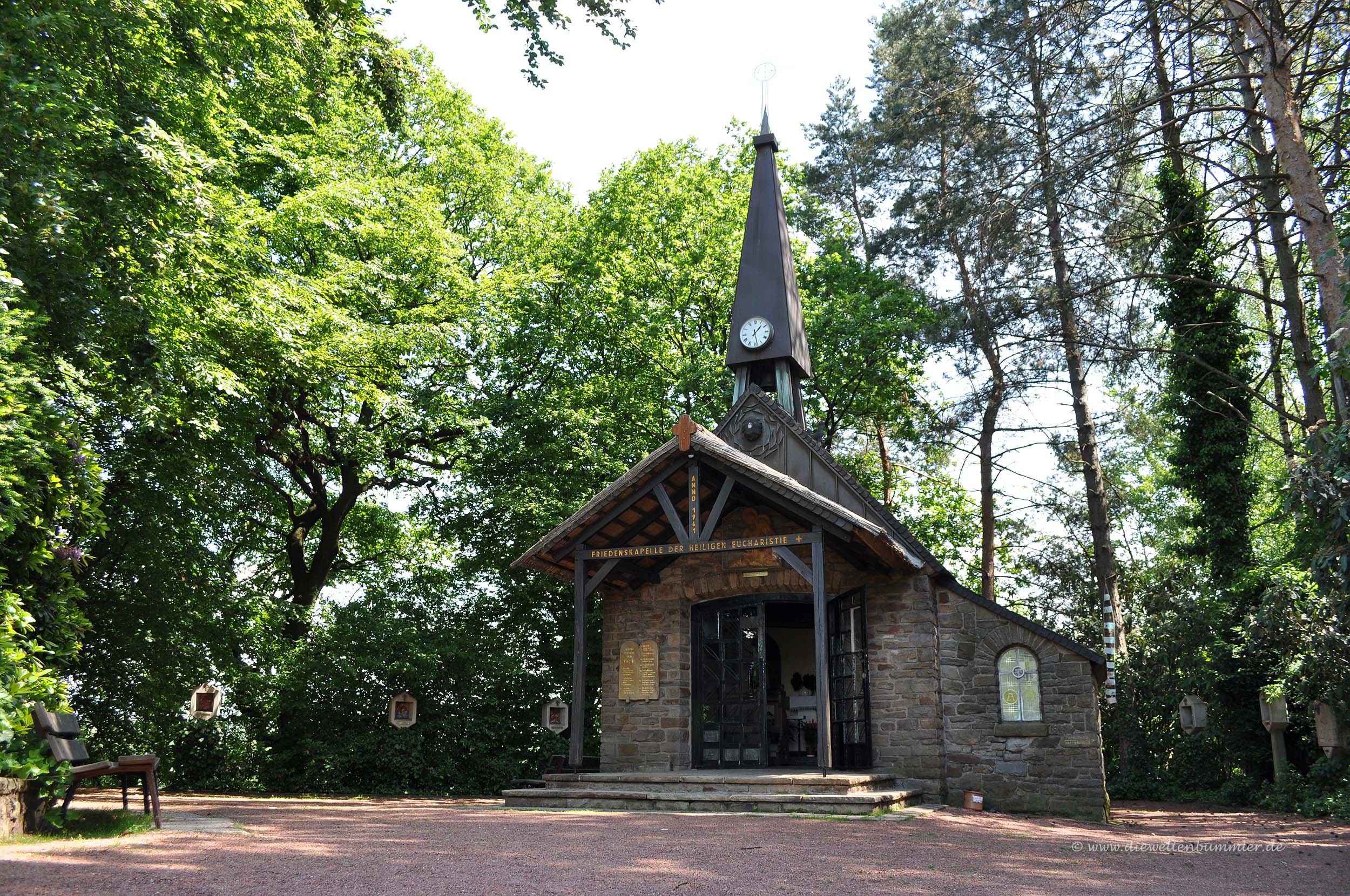 Oberhalb des Tiergeheges befindet sich in idyllischer Lage die Friedenskapelle der Heiligen Eucharistie. Dieses kleine und sehenswerte Bauwerk wurde 1961 von der Eucharistischen Ehrengarde aus Bruchstein geschaffen. Neben dem schmiedeeisernen Tor befinden sich zwei Tafeln aus Ruhrsandstein, in denen die zehn Gebote eingemeißelt wurden, während das Innere der Kapelle schmuckvoll ausgestattet wurde. Rund um die Kapelle existiert zudem ein kleiner Kreuzweg. Die Kapelle ist täglich von 9 Uhr bis zum Anbruch der Dunkelheit geöffnet.