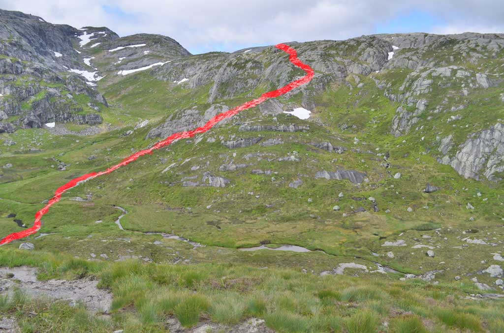 Die rote Linie ist der weitere Weg