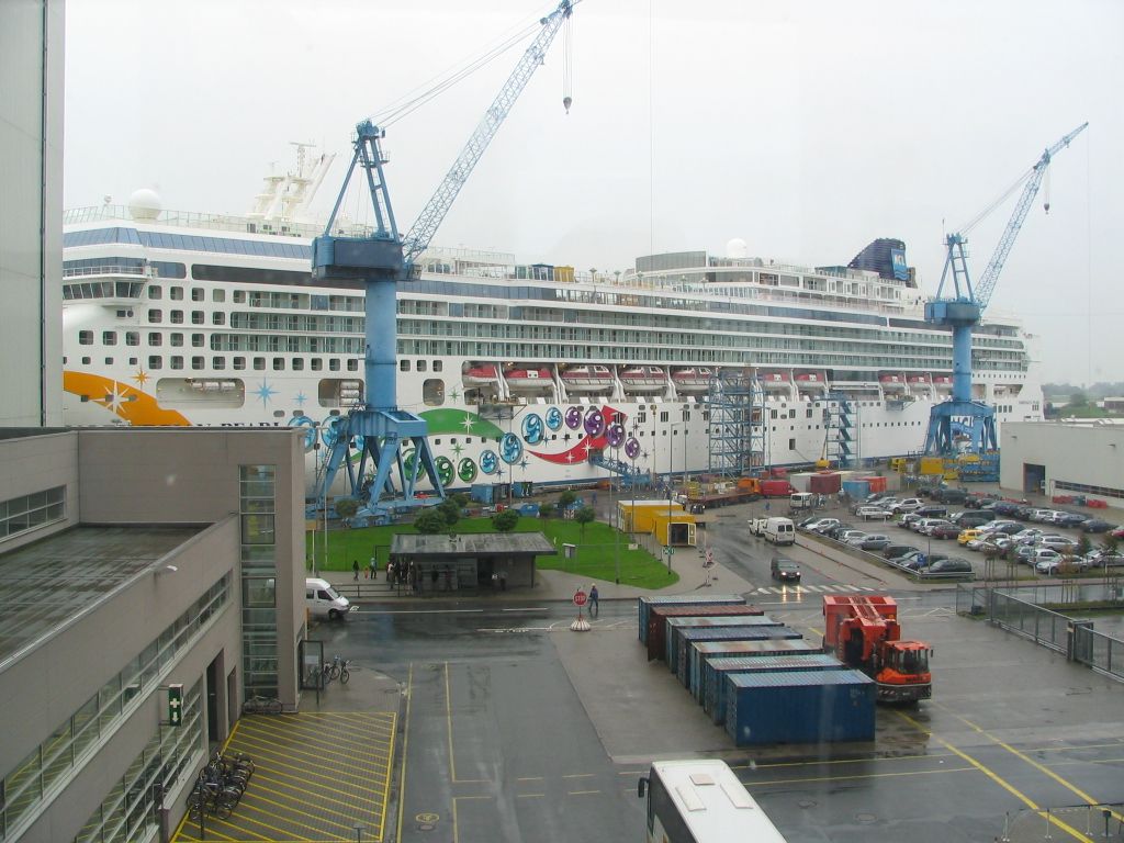 Auf dem Weg dorthin besuchten wir kurz noch die Meyer-Werft in Papenburg und schauten uns an, wie die damals neue Norwegian Pearl gebaut wird.