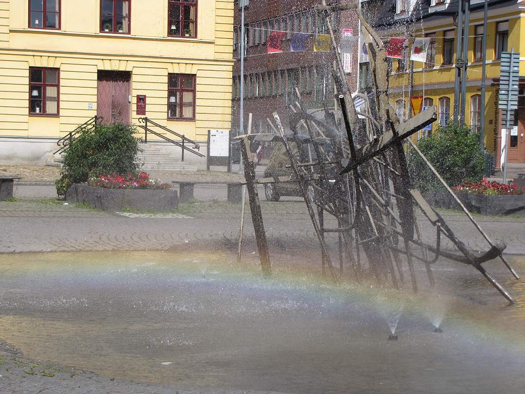 Nach der Besichtigung geht es wieder durch das Troll-Tal hinab bis auf Meereshöhe, wo wir der Straße nach Bergen folgen. Wir benutzen mal wieder eine Fähre, was mittlerweile echt ins Geld geht, besichtigen die Kirche von Voss und biegen bei der Einfahrt nach Bergen falsch ab, so dass wir am Museum „Gamle Bergen“ parkten. Das liegt aber eine Stunde Fußmarsch vom eigentlich Zentrum entfernt, was wir jedoch erst nach diesem Fußmarsch wissen. Wir schauten uns das Holzviertel Bryggen an, welches auf der Weltkulturerbeliste steht und spazierten über den Fischmarkt, wo man uns auch Salami aus Walfleisch anbot. Darauf verzichte ich aber gerne. Gerade die Norweger und der Walfang…