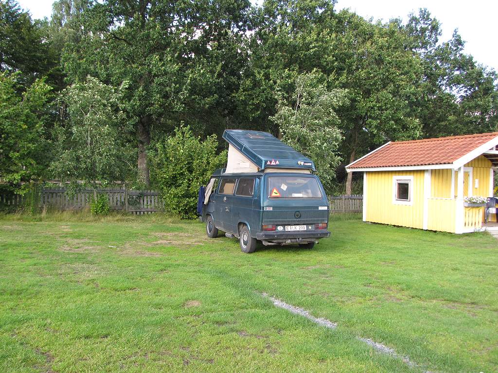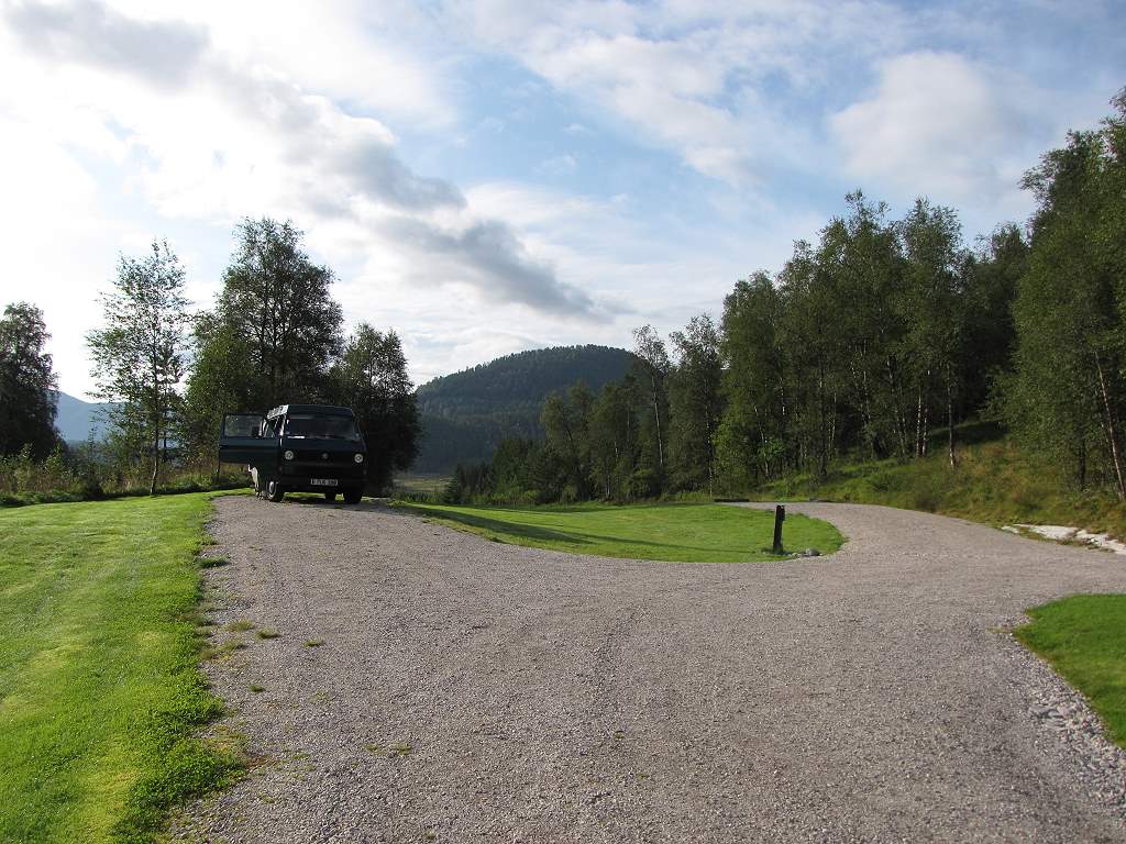 Nachdem wir abends einen Parkplatz schnell wieder verließen, weil auf Grund der nahe gelegenen Europastraße doch eine ziemliche Geräuschkulisse zu vernehmen war, lassen wir uns das erste Mal auf einem Campingplatz nieder. Mit 170 Kronen (rund 20 Euro) nicht gerade der günstigste, vor allem, wenn man bedenkt, dass die Duschen noch extra bezahlt werden müssen. Aber dafür war er schön ruhig und wir haben mal eine trollfreie Nacht.