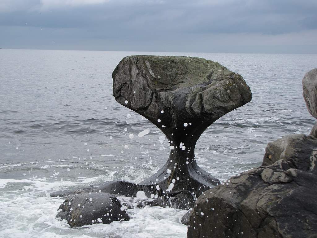 Unser heutiges Ziel heißt Kannesteinen. Dafür passieren wir Forde und Maloy und erreichten den ausgewaschenen Felsen der am Ufer aus dem Meer raus schaut. Sieht ziemlich witzig und skurril aus und dafür lohnt auch der weite Weg, denn Kannesteinen ist ziemlich abseits der typischen Touristenrouten. Trotzdem, auch hier treffen wir natürlich deutsch sprechende Touristen, die schnell aus dem Auto springen, zwei, drei Fotos machen und schnell weiter düsen. Für die kleine Zwergspitzmaus, die sich stundenlang im Gras beobachten lässt, haben sie nur einen kurzen Blick übrig. Dabei ist diese Maus mit ihrer Suche nach Fressen fast schon spektakulärer als Kannesteinen.