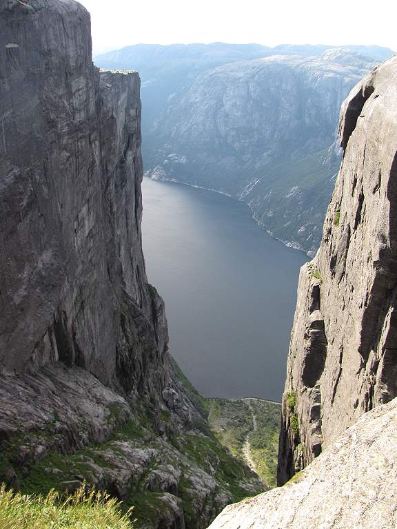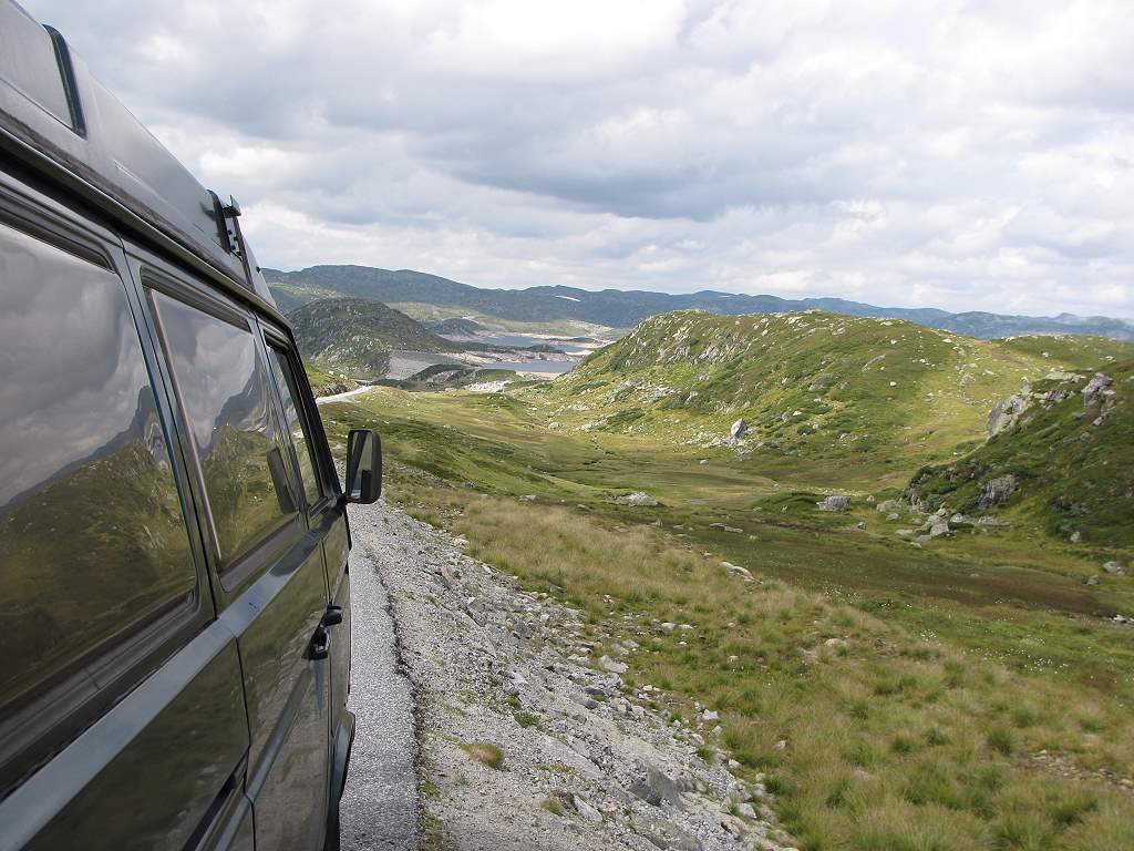 Auf der Weiterfahrt ist es mit meiner Geduld endgültig vorbei. Wir sind endlich mal auf einer breiten und gut ausgebauten Straße unterwegs, als hinter mir eine Norwegerin überholen möchte. Ist ja gar kein Problem, ich hindere niemanden daran und fahr oftmals auch sehr weit rechts, damit Überholende es problemlos schaffen. Diese Dame aber schert auf die linke Fahrspur und macht – nichts, außer zu hupen… Keine Ahnung, was sie von mir will, ich mache doch schon Platz und fahre auch recht zügig. Aber sie macht keine Anstalten zu überholen, sondern schert wieder hinter mir ein. Bitte schön, dann eben nicht. Wenig später der zweite Versuch. Dieser endet damit, dass sie ausschert, Gas gibt und vor mir so einschert, dass ich scharf bremsen muss und rechts noch beinahe die Felswand mitnehme. Ich ärgere mich wahnsinnig über dieses Fahrverhalten und hupe diesmal auch. Doch der Wagen ist schon weg, ist natürlich schneller als ich. Nach wenigen Kilometern sehe ich plötzlich, dass die Dame an einer Tankstelle angehalten hat. Jetzt platzt es aus mir heraus. Mein Adrenalinspiegel übersteigt immer noch die steilen Felswände rechts und links der Straße und diese Frau wird jetzt zu meinem Ventil darüber, dass die norwegischen Autofahrer bisher sehr rücksichtslos aufgefallen sind. Nur Millimeter vor ihrer Motorhaube schneide ich ihr den Weg ab und steige aus. Natürlich mache ich nichts schlimmes, aber ich denke, alleine diese Aktion hat der Frau gehörige Angst eingejagt. Mein Benehmen entspricht in den nächsten zwei Minuten nicht dem, wie man sich im Ausland verhalten sollte. Das gebe ich zu, aber ich will jetzt einfach von ihr wissen, ob sie die Absicht hegt, mich umzubringen. Schnell stellt sich heraus, dass sie schlicht und einfach beim Autofahren überfordert ist. Sie argumentiert, ich hätte doch in den Spiegel schauen müssen. Ja, herrgott, was habe ich denn getan? Platz habe ich gemacht. Außerdem hätte sie ja extra gehupt. Das ist zwar schön und es gibt Länder, in denen man hupt, bevor man überholt. Das ist richtig. Norwegen gehört aber eindeutig nicht dazu. Und wenn sie doch schon hupt, um ihren Überholvorgang anzukündigen, dann soll sie dich auch bitteschön überholen. Nein, diese Frau hat einfach Angst vor dem Autofahren, was ich allerdings erst nach unserem Streitgespräch bemerke. Hätte ich das vorher gewusst, wäre ich einfach weiter gefahren. Wahrscheinlich besteigt sie jetzt nie wieder ein Auto. Na, auch gut.