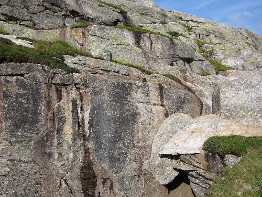 Wir haben schon früher mal gesagt, dass wir einen Stellplatz nicht benutzen, wenn auch nur einer von uns ein ungutes Gefühl hat, auch wenn der Platz noch so schön und scheinbar sicher ist. Heute ist es soweit, ich will hier weg. Ich weiß ganz genau, dass ich hier kein Auge zu machen würde. Während Moni hinten sitzt und alles festhält, was mittlerweile los im Auto herum steht, schmeiße ich den Motor an und fahre durch das Tal weiter, durch die beiden Tunnel nach oben und geselle mich oberhalb des Tales zu zwei schwedischen Wohnmobilen, in denen der Schlaf bereits schon lange eingekehrt ist. Immerhin ist es schon nach Mitternacht. Beim Verlassen des Parkplatzes sehe ich aber noch, dass in dem verlassenen Bauernhof ein Licht brennt. Wie kann das sein? Dort war niemand zu sehen, der Hof gehört zu einem Museum, die Türen waren fest verriegelt, wir standen ja davor. Warum brennt dort plötzlich ein Licht? Wir sind uns nur eines sicher: Es war gut, den Platz zu verlassen. Gibt es in Norwegen vielleicht doch Trolle? Und warum sprüht ausgerechnet an diesem Platz jemand ein Smiley an einen Felsen mit einem Troll-Schriftzug?