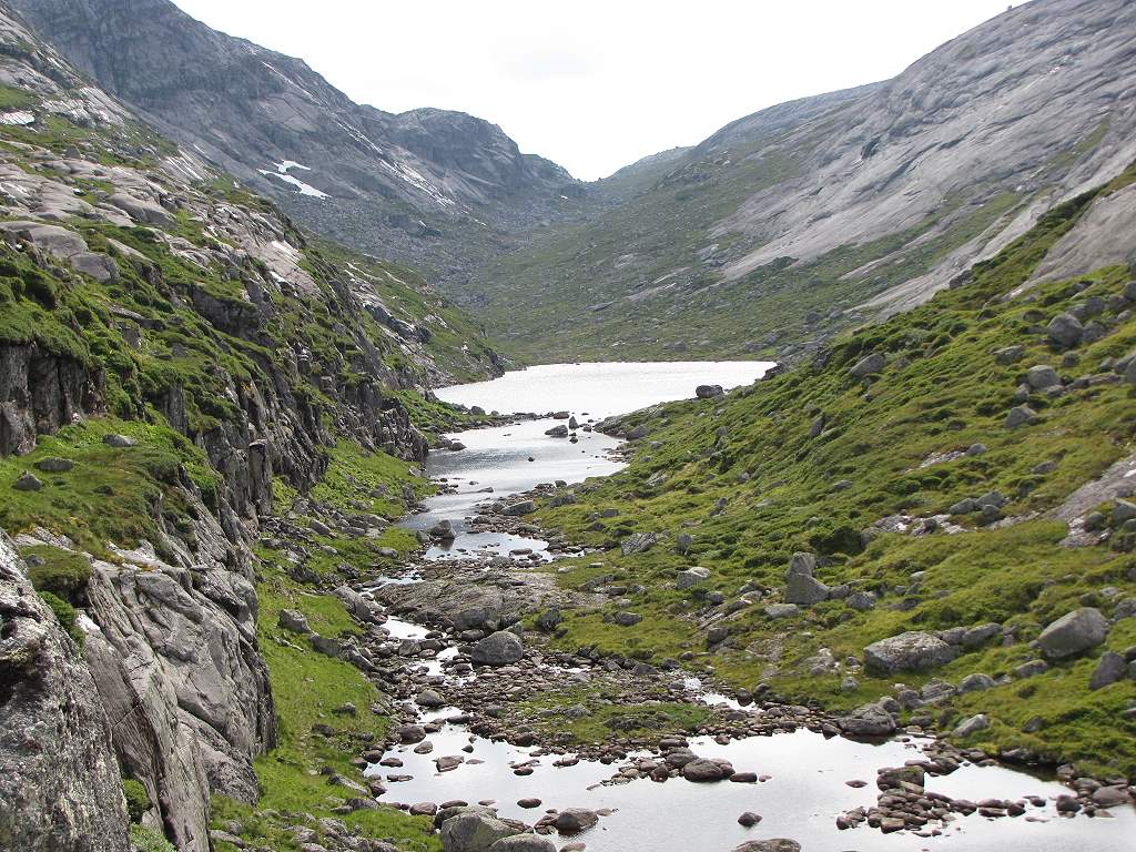 Spät abends kommen wir in einem Tal an, dass sich in der Nähe des Vorringsfoss befindet und durch das die so genannte Abenteuerstraße 7 verläuft. Auf einem Parkplatz entscheiden wir uns, zu bleiben und spazieren noch ein wenig über die alte nicht mehr genutzte Straße 7 entlang, die weitaus schmaler und kurviger ist, als die neue, an der wir parken und die durch zwei lange Tunnel führt. Auch schauen wir uns einen alten Bauernhof an, der zu einem Museum gehört und leer steht.