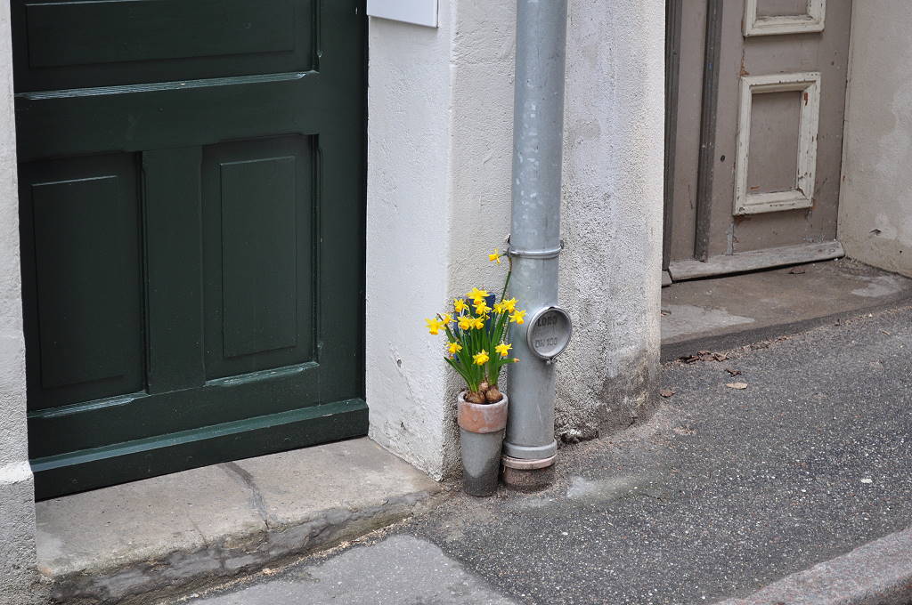 Dieser befindet sich ganz zufällig auf dem Mittelpunkt des Marktplatzes, exakt vor dem Eingang des Rathauses. Welch Zufall.