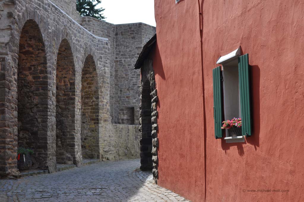 Besonders beeindruckt hat uns allerdings Burg Eltz, welche zwar nicht direkt an der Mosel liegt, aber doch in geringer Entfernung. Übrigens konnten wir dort auf dem Parkplatz ganz gut nächtigen, wenn auch nicht offiziell. Ein idealer Platz wäre aber auch der Parkplatz am geografischen Mittelpunkt von Rheinland-Pfalz gewesen, aber dafür war es an dem Tag noch zu früh. Mit einem Besuch von Cochem an der Mosel und der dortigen Reichsburg verabschiedeten wir uns von dem Fluss und fuhren wieder gen Heimat. Ich ahnte zu dem Zeitpunkt nicht, dass ich nur ein Jahr später rund 350 Kilometer an der Mosel wandern würde. Mayen lag zwar noch auf dem Weg, konnte aber trotz Genoveva-Burg und verdrehtem Kirchturmdach nicht mit den Moselstädtchen mithalten. Abschließend besichtigten wir noch den ehemaligen Atom- und Regierungsbunker im Ahrtal. Dieser kann nur im Rahmen einer Führung besucht werden, die jedoch sehr lohnenswert ist, da man doch allerlei interessante Dinge über unsere Regierung erfährt.
