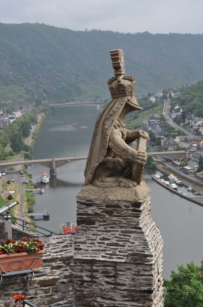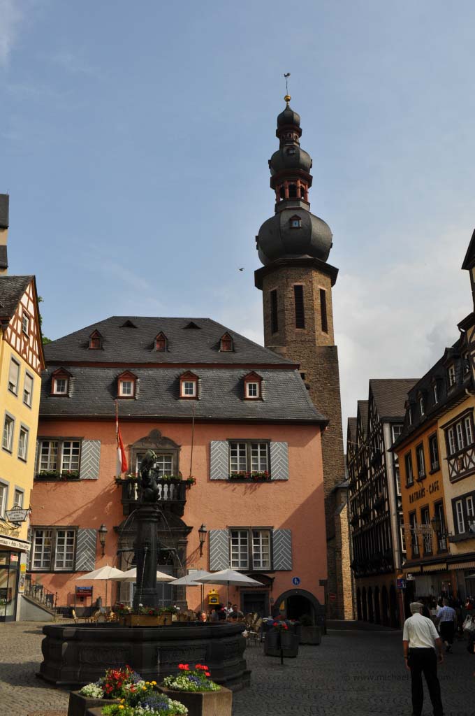 Eine kleine Wohnmobiltour an die Mosel ist meistens lohnenswert. Wir entschieden uns, endlich mal den rheinland-pfälzischen Teil des Flusses kennen lernen zu wollen, der zwischen Trier und Koblenz liegt. Da wir aber die beiden Städte bereits gut kennen und auf einen dortigen Besuch verzichteten, mussten wir uns zusätzlich noch ein paar Ergänzungen einfallen lassen. Denn so lang ist die Mosel zwischen Trier und dem Rhein auch wieder nicht. Also besichtigten wir zunächst die beiden Schlösser Augustusburg und Falkenlust bei Brühl, die auf der Welterbeliste der Unesco verzeichnet sind. Weiter ging es nach Bad Münstereifel, wo wir die hübsche Altstadt besichtigten und natürlich einen Blick auf das Rathauscafé von Heino warfen. Heino hatte ich aber schon viele Jahre zuvor in seinem Café getroffen, weil er mich bei meiner ehrenamtlichen Fahradtour unterstützte.