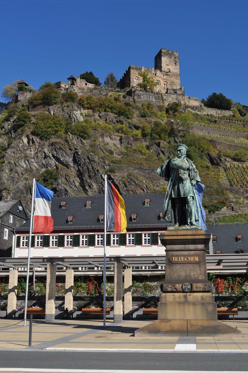 Auf dem weiteren Weg gen Süden folgt Schloss Philippsburg. Auch hier befindet sich direkt am Rhein ein Stellplatz für Wohnmobile. Zwar kostenpflichtig aber eben sehr schön gelegen. Und nicht weit davon entfernt ist über einen Burgenlehrpfad die Marksburg zu erreichen. Diese gilt als Klassiker und wird gerne im Modellbau nachgebaut. Übrigens auch von Japanern in Originalgröße 😉