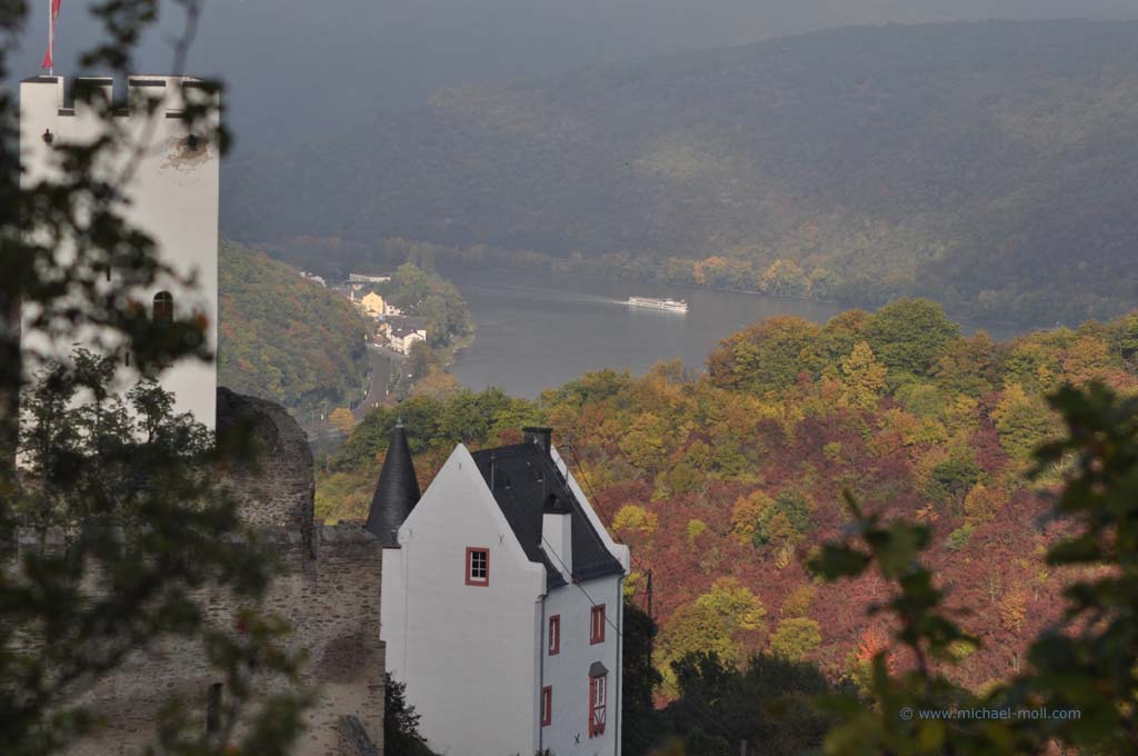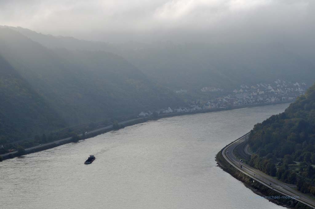 Gleich hinter der Marksburg erreicht man den Bopparder Hamm auf der anderen Flussseite. Dieser steile Hang mit der größten Schleife des Rheins bietet nicht nur tolle Weinlagen, sondern auch einen fantastischen Ausblick auf den Fluss.