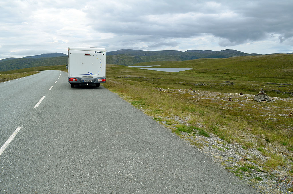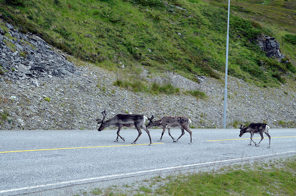 Wir machten uns hingegen auf den Weg, auf der E 69 südwärts zu fahren. Dabei fuhren wir natürlich wieder durch den Nordkap-Tunnel, der ja mittlerweile kostenlos ist und ganz schön in die Tiefe geht. Da ich ja früher auch schon mal überlegte, mit dem Fahrrad zum Nordkapp zu fahren, fallen mir Radreisende sowieso immer auf. Aber wenn ich einen Radreisenden in eben diesem Tunnel sehe, der sich den steilen Berg inmitten der Abgase hochkämpft, bin ich dann doch froh, einen anderen Weg gefunden zu haben, um zu reisen.