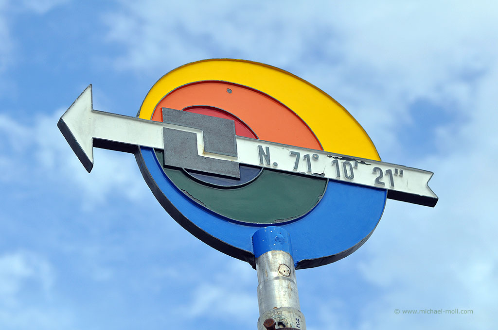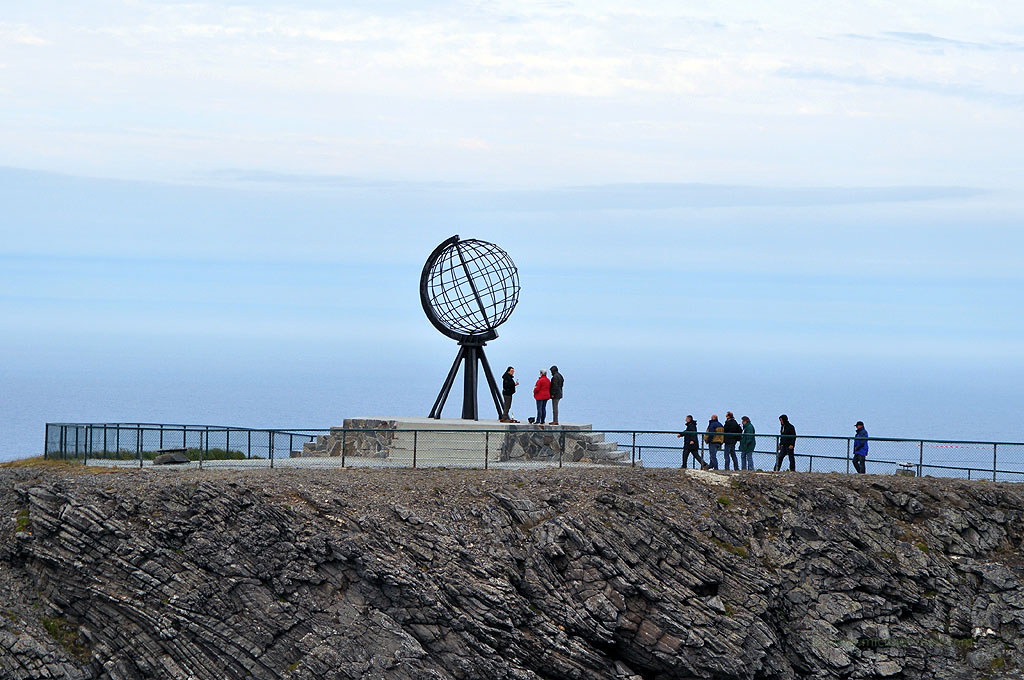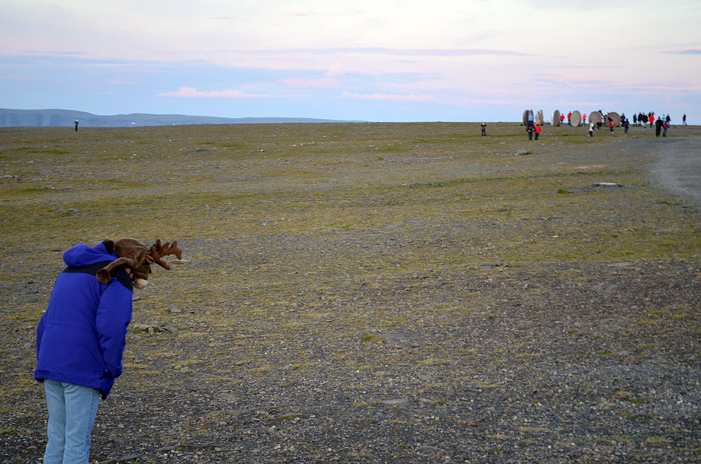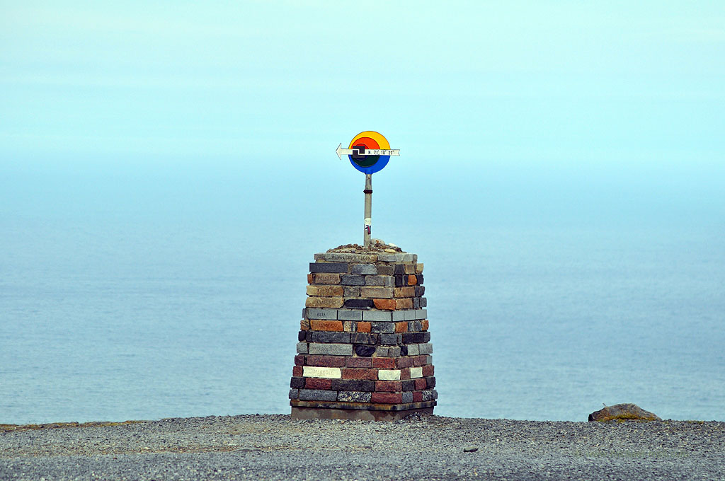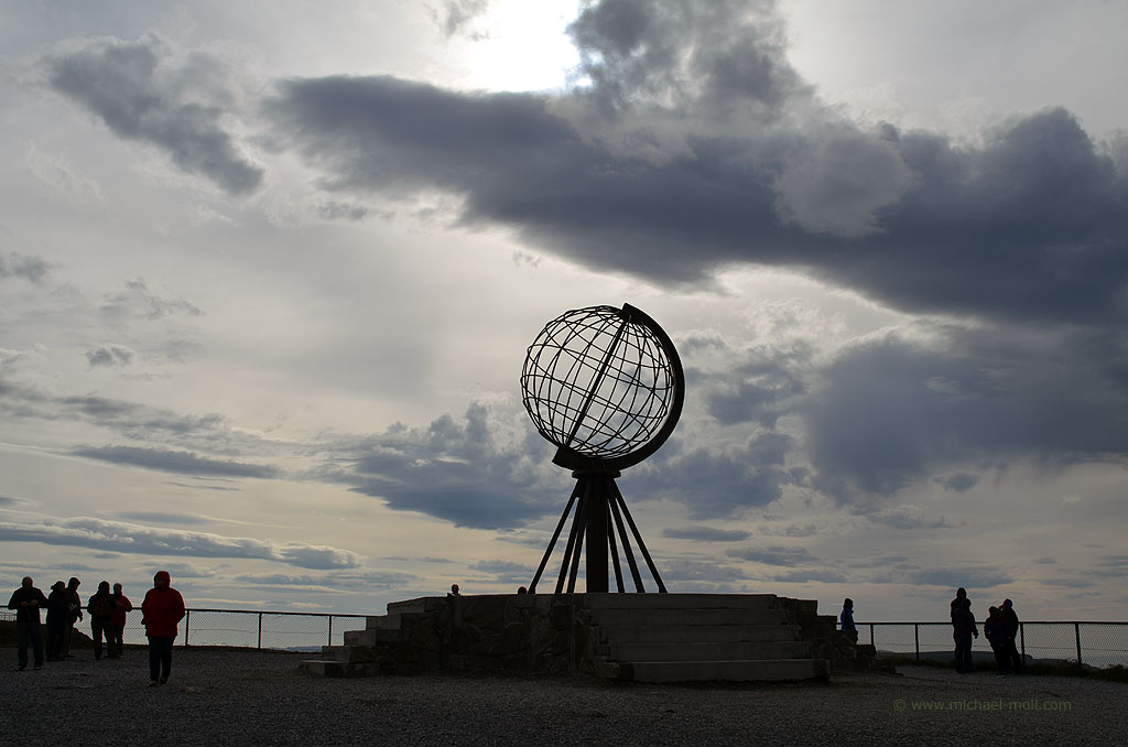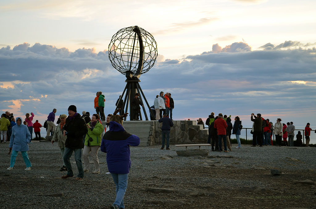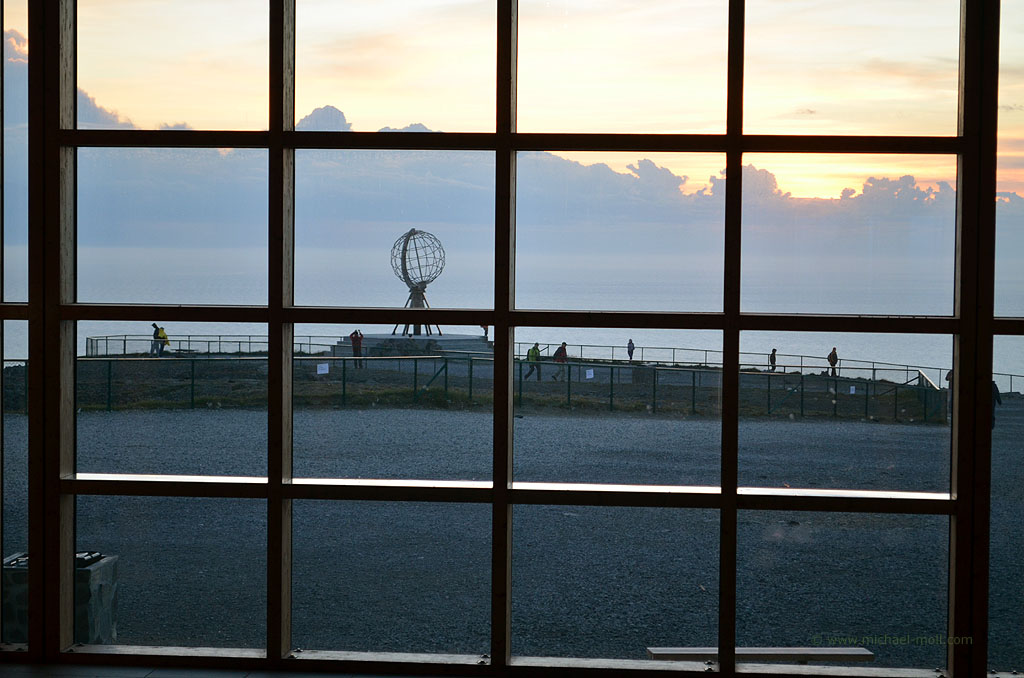 Der Tag begann für uns damit, dass wir um Mitternacht am Globus des Nordkaps standen und zuschauten, wie die Sonne knapp unter den Horizont verschwand und wenig später wieder auftauchte – theoretisch. Denn die Sonne verschwand schon etwas früher im Dunst der Wolken am Horizont. Aber ansonsten war das Wetter einfach nur genial. 15 Grad und Sonne. Was will man da mehr? Am zweiten Tag war es nicht mehr ganz so schön. Aber das war egal. Wir schauten uns um, besuchten die Kapelle, guckten den Film im Kino (mehrmals natürlich) und beobachteten die Touristen, die mit den Bussen angekarrt werden, nachdem sie in Honningsvåg ihr Schiff verließen. Wir haben ähnliches ja schon im Geirangerfjord gesehen und es sah verlockend aus, wenn man sich um nichts kümmern muss auf so einer Schiffsreise. Doch wir nehmen an, das ist für uns absolut nichts. So viele Menschen auf einmal, so voll und ständig unter Zeitdruck alles besichtigen? Nein, wir genossen den Tag am Nordkap einfach mal mit Nichtstun.