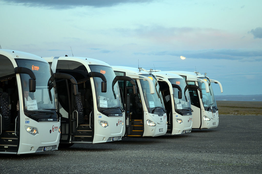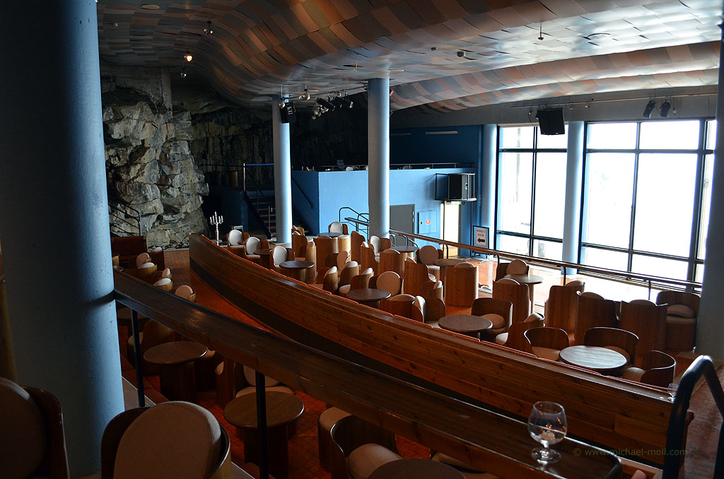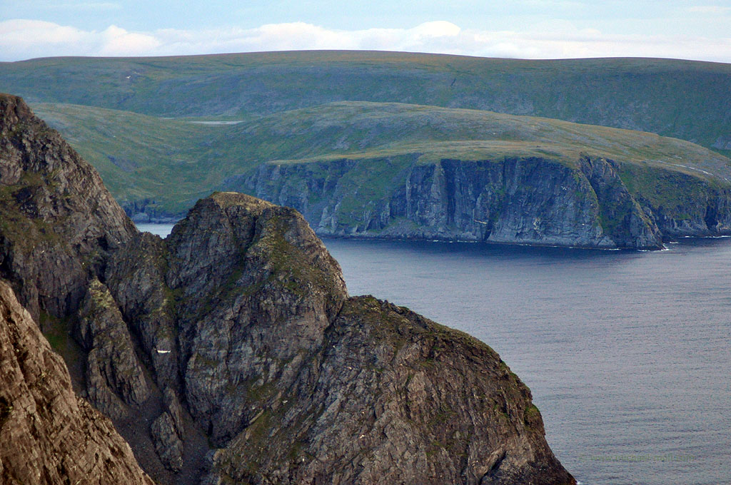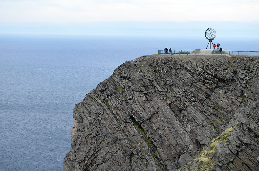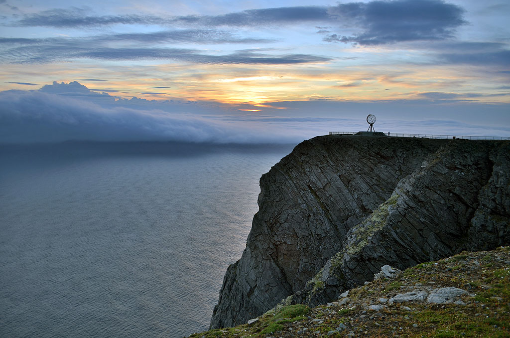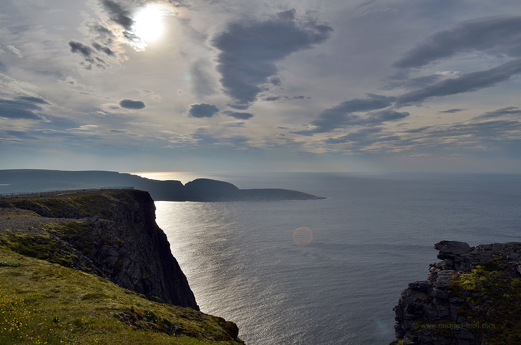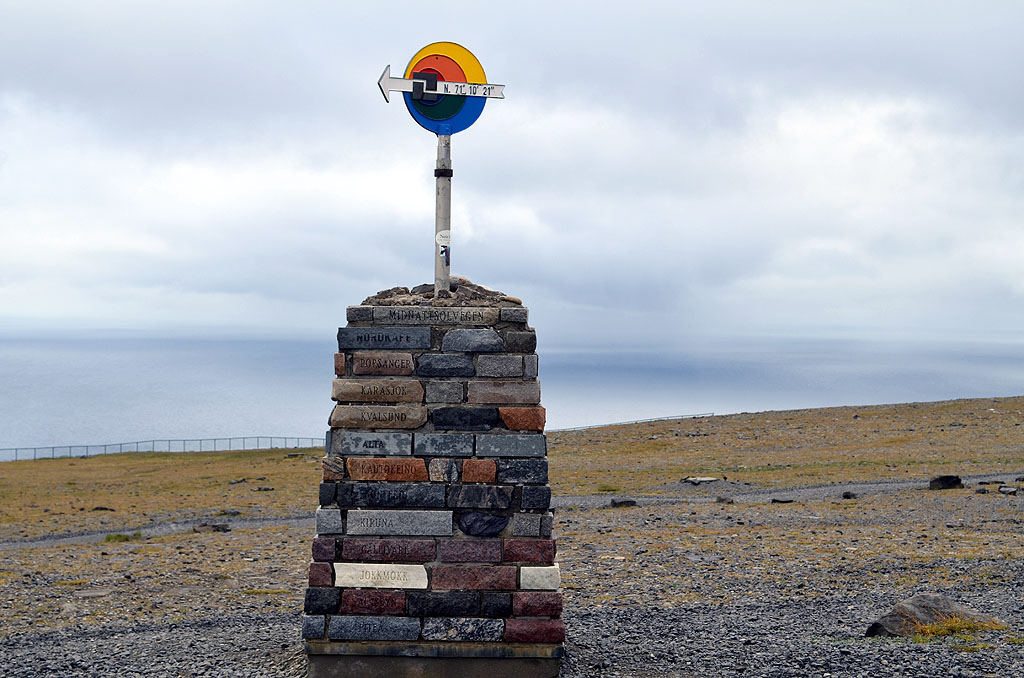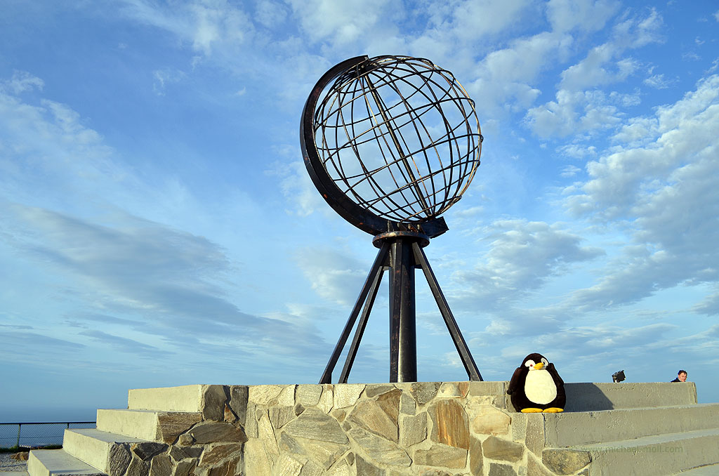 Der Tag begann für uns damit, dass wir um Mitternacht am Globus des Nordkaps standen und zuschauten, wie die Sonne knapp unter den Horizont verschwand und wenig später wieder auftauchte – theoretisch. Denn die Sonne verschwand schon etwas früher im Dunst der Wolken am Horizont. Aber ansonsten war das Wetter einfach nur genial. 15 Grad und Sonne. Was will man da mehr? Am zweiten Tag war es nicht mehr ganz so schön. Aber das war egal. Wir schauten uns um, besuchten die Kapelle, guckten den Film im Kino (mehrmals natürlich) und beobachteten die Touristen, die mit den Bussen angekarrt werden, nachdem sie in Honningsvåg ihr Schiff verließen. Wir haben ähnliches ja schon im Geirangerfjord gesehen und es sah verlockend aus, wenn man sich um nichts kümmern muss auf so einer Schiffsreise. Doch wir nehmen an, das ist für uns absolut nichts. So viele Menschen auf einmal, so voll und ständig unter Zeitdruck alles besichtigen? Nein, wir genossen den Tag am Nordkap einfach mal mit Nichtstun.