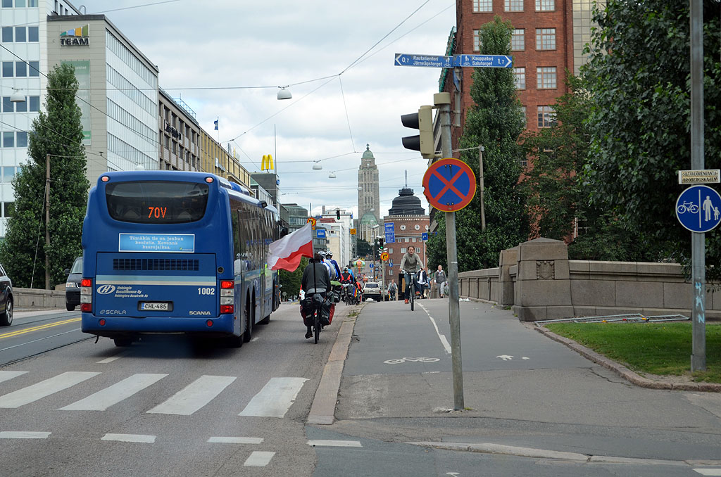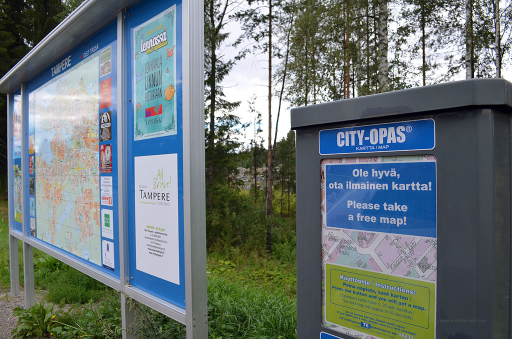 Die weitere Fahrt verlief recht anspruchslos. Es gab ja keine Fjorde mehr, die Zeit der Rentiere ist südlich des Polarkreises leider auch vorbei und die Straßen sind in Finnland gut befahrbar. Es ist halt leider nur etwas eintönig. So durchquerten wir Oulo an der Ostsee und fuhren geradewegs zum geografischen Mittelpunkt von Finnland. Da ich nicht nur Dreiländerecke sammle, sondern auch geografische Mittelpunkte, war dies natürlich Pflicht. Dieser war jedoch sehr leicht zu erreichen, da er sich direkt neben der Hauptstraße befindet. Schade nur, dass er mit einer leeren Dose Bier geschmückt war und vom benachbarten Wohnhaus ein Hund leicht aggressiv bellte. Zusammen mit dem nicht so prickelndem Wetter wirkte das etwas ungemütlich auf uns.