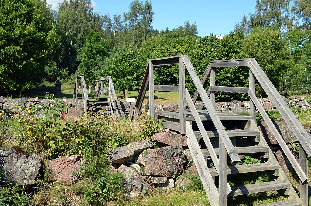 Am nächsten Morgen beabsichtigen wir eine Wanderung vorzunehmen. Wir überquerten den Bomarsund und wanderten auf der Insel Prästö. Der rund 5 Kilometer lange Rundkurs führte uns an Gräbern früherer russischer Bewohner vorbei und war sehr gepflegt. Die breiten Graswege waren so akkurat geschnitten, dass man meinen könnte, hier würden tagtäglich zig Menschen wandern. Dabei waren wir ganz alleine. Unterwegs kamen wir zu einem Aussichtsturm, von dem aus wir einen wunderbaren Ausblick auf die Schärenlandschaft der Åland-Inseln genießen konnten. Schafe stellten sich uns noch in den Weg und ein jüdischer Friedhof lag am Wegesrand.