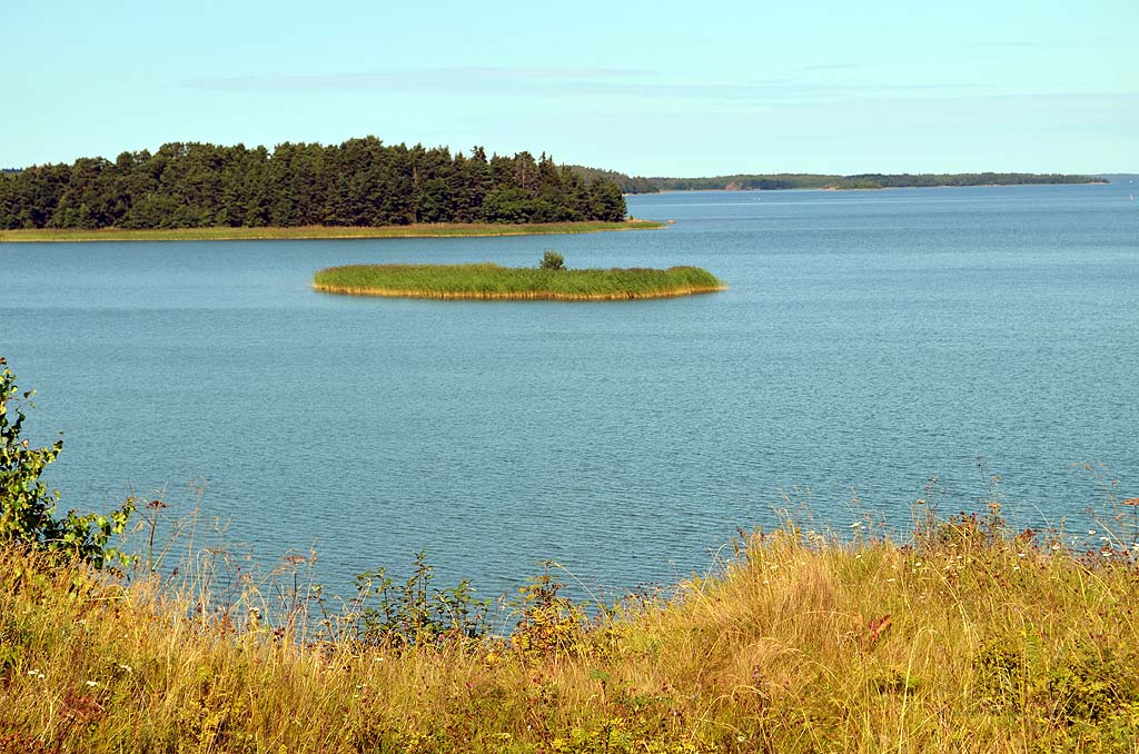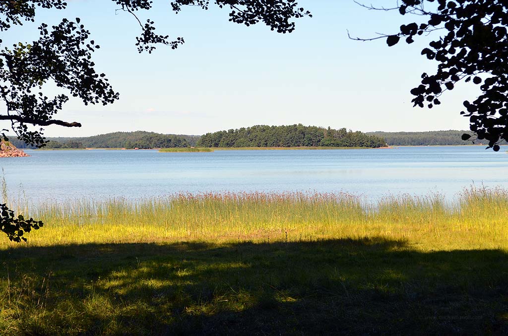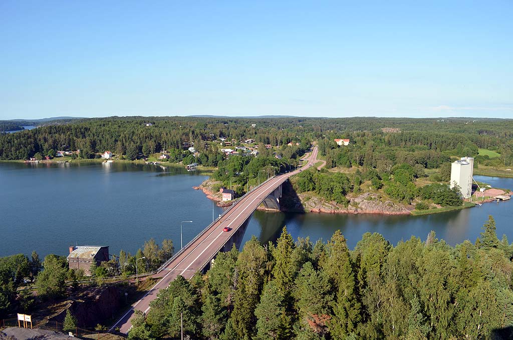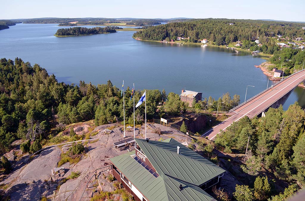 Wir fuhren bis zum Ende der Alören-Insel, wo abermals eine Fähre fahren würde. Da wir aber vermuteten, dass die beiden Simskäla-Inseln nicht viel anders aussehen würden, warteten wir die Fähre nicht ab und fuhren wieder zurück. Wir besichtigten eine Kirche bei Listersby und fuhren zurück auf die Hauptinsel, wo wir bei Haraldsby einen hölzernen und wackeligen Aussichtsturm eines Restaurants erklommen. Dieses hatte den treffenden Namen Uppe på Berget, denn kaum ein Punkt schien in der näheren Umgebung höher zu sein. So konnte man hier natürlich wieder ein wunderbares Panorama genießen.
