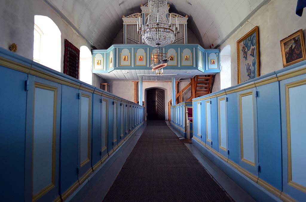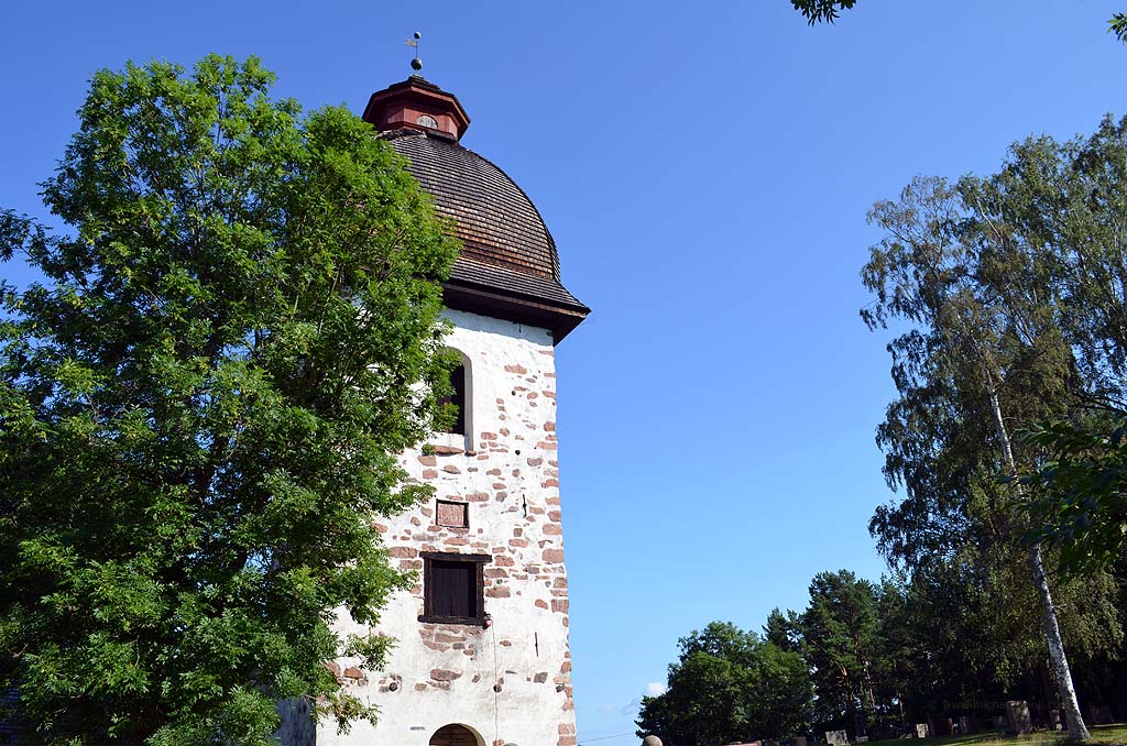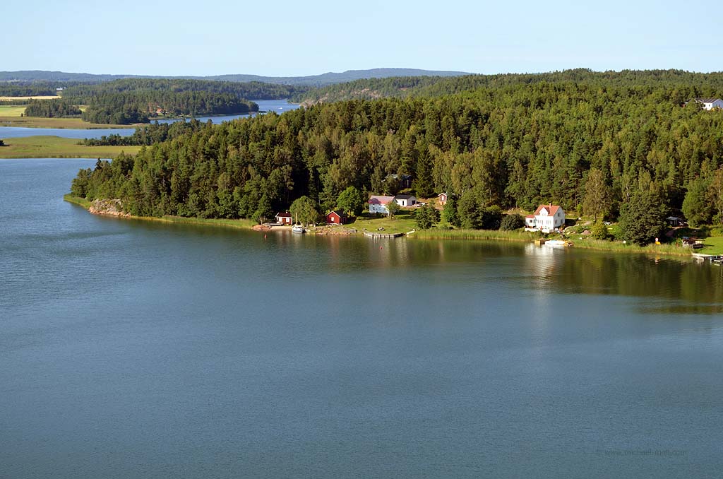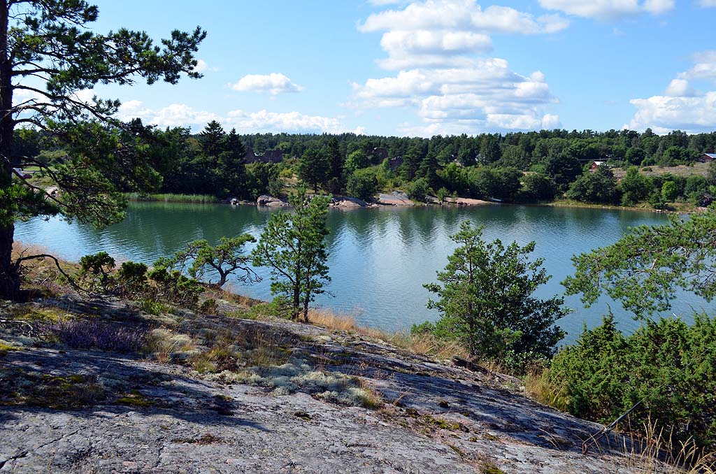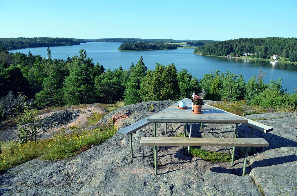 Wir fuhren bis zum Ende der Alören-Insel, wo abermals eine Fähre fahren würde. Da wir aber vermuteten, dass die beiden Simskäla-Inseln nicht viel anders aussehen würden, warteten wir die Fähre nicht ab und fuhren wieder zurück. Wir besichtigten eine Kirche bei Listersby und fuhren zurück auf die Hauptinsel, wo wir bei Haraldsby einen hölzernen und wackeligen Aussichtsturm eines Restaurants erklommen. Dieses hatte den treffenden Namen Uppe på Berget, denn kaum ein Punkt schien in der näheren Umgebung höher zu sein. So konnte man hier natürlich wieder ein wunderbares Panorama genießen.