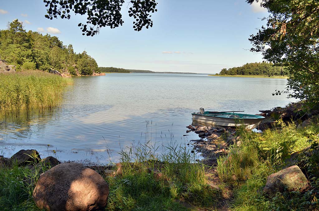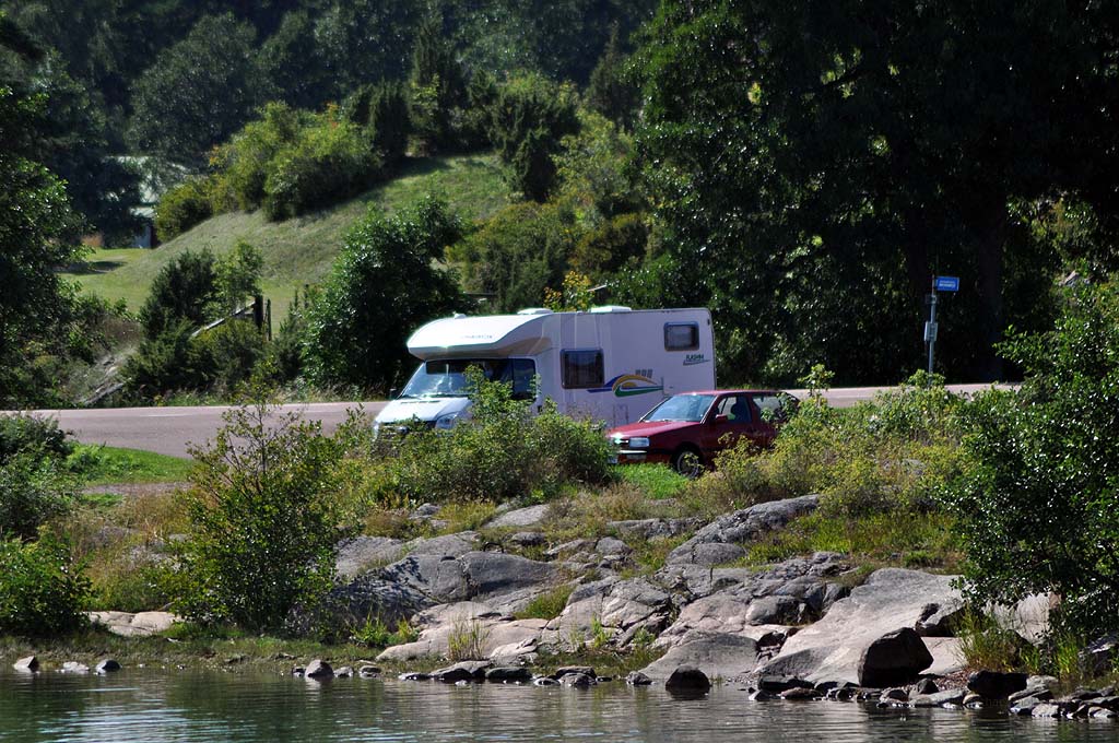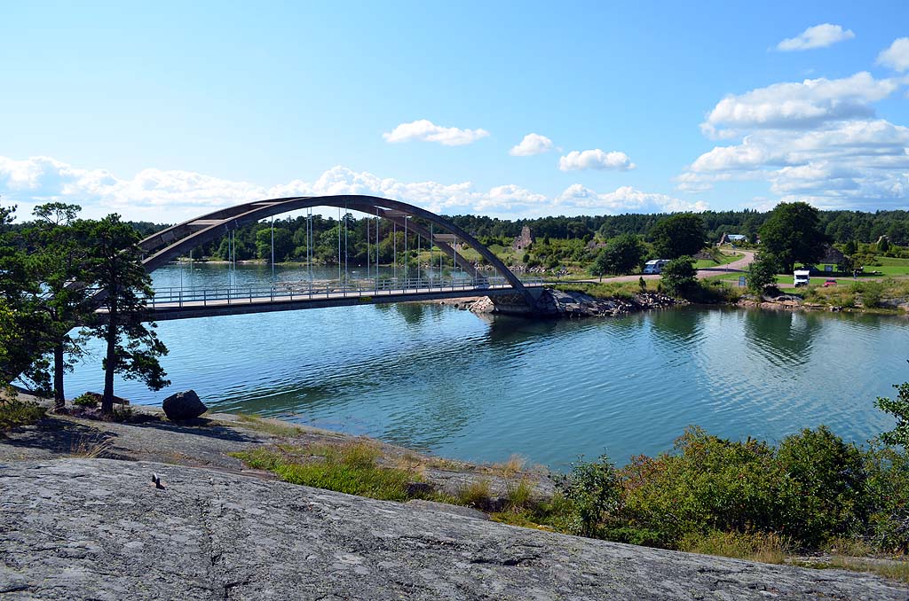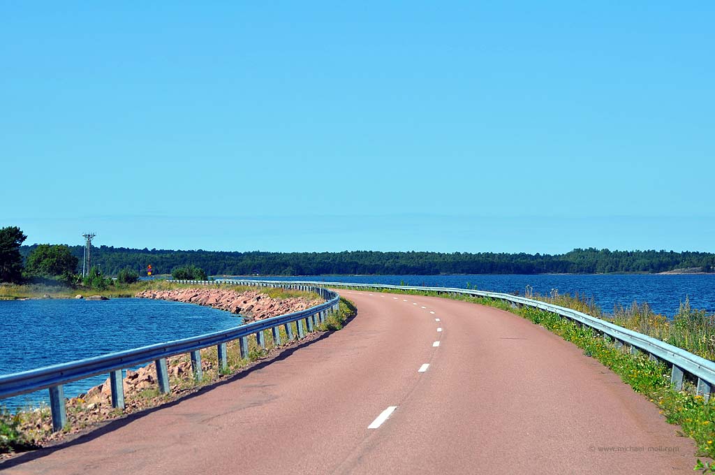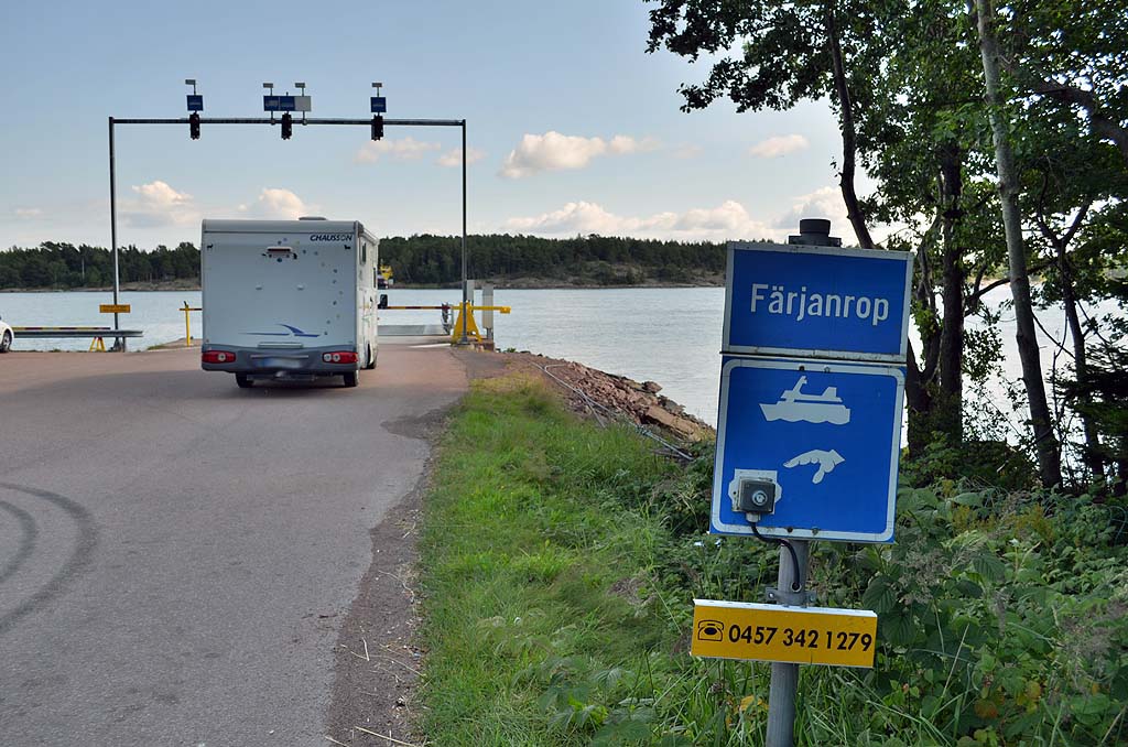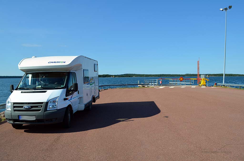 Abends machten wir uns auf die Suche nach einem Stellplatz. Wir hatten im nördlichen Bereich der Åland-Inseln schon einige Möglichkeiten gesehen, übernachten zu können. Doch die Strecke wieder zurückfahren wollte ich auch nicht unbedingt. Außerdem kannten wir die südlichen Inselabschnitte noch nicht und der Name einer Insel hat es mir irgendwie angetan: Lumparland. Ich fand den Namen so niedlich, dass ich mir die Insel unbedingt mal anschauen wollte. Auch wenn es landschaftlich wohl kaum anders aussehen würde. Also überquerten wir die Insel Högskär, die durch Brücken mit den anderen Inseln verbunden ist und fuhren nach Lumparland. Mehr als den dortigen Fähranleger nach Finnland ist dort aber nicht zu sehen. Abgesehen von der schönen Natur natürlich, aber die nützte uns jetzt gerade nichts. Ich bog auf eine kleine Seitenstraße ein und schon nach wenigen Metern sprang ein Reh aus einem Feld heraus und überquerte die Straße. Na, das fehlte noch. In Norwegen haben wir zwei Elchbegegnungen schadlos überstanden und sind zahlreichen Rentieren ausgewichen und dann kam hier ein Reh und wollte uns allen den Tag verderben? Also wieder mal eine Vollbremsung und zum Glück nicht erwischt. Aber wofür das Ganze? Weil die Straße in einer Sackgasse endet. Anders als auf der Karte führte die Straße nicht zu einem Küstenabschnitt, sondern zu einem Wendehammer, von dem aus mehrere Zugangswege zu Privatgrundstücken führten. Das war nichts, also wieder zurück. Letztendlich blieben wir nach einer etwas längeren Suche direkt neben einer Brücke und einem Schild mit der Aufschrift Lumparland stehen. Also, geht doch.