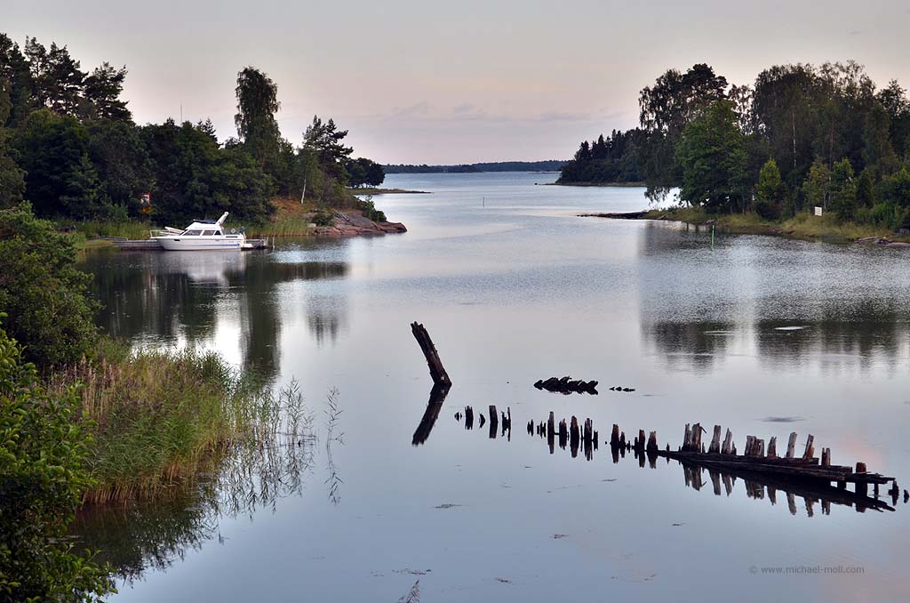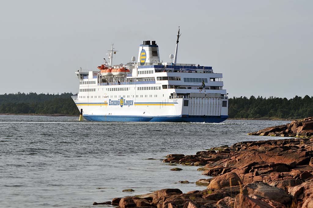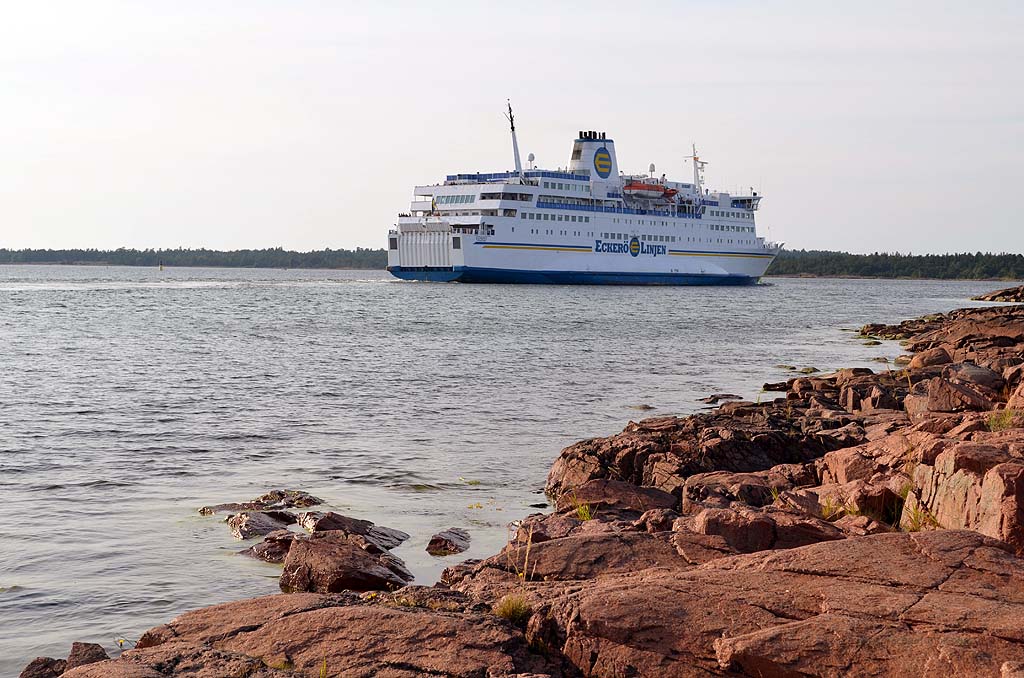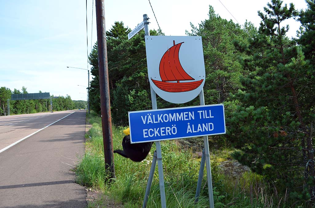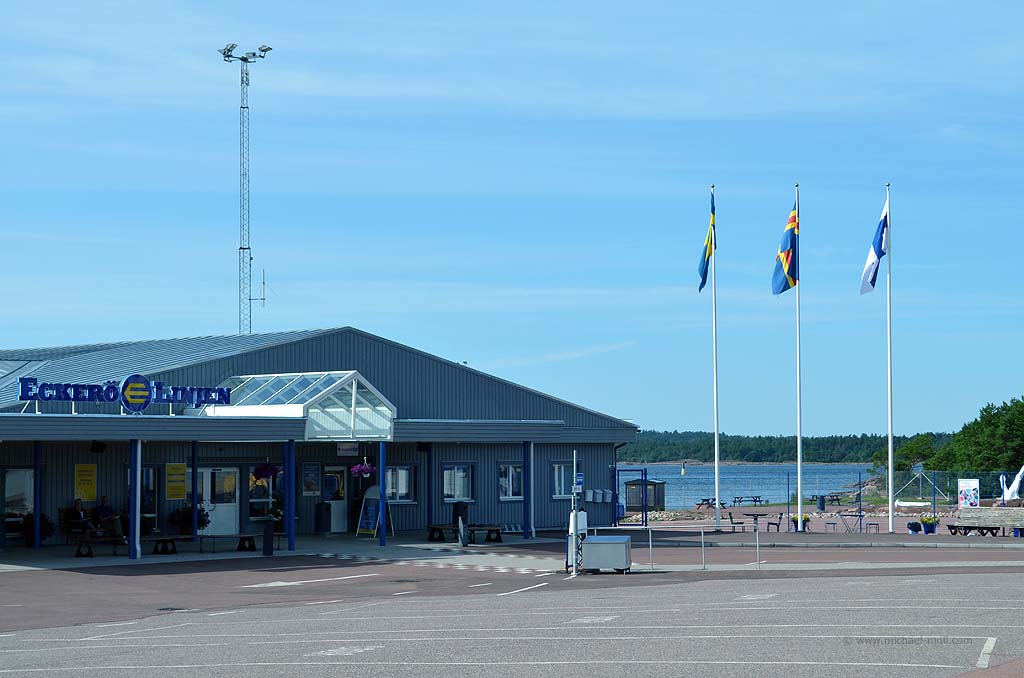 Über Hammarland fuhren wir nach Eckerö, der letzten Insel, die wir noch kennen lernen sollten. Hier besuchten wir die Kirche und übernachteten an dem kleinen Fähranleger, der nach Schweden führte. Wir konnten noch sehen, wie abends ein Schiff ablegte und zahlreiche Autos mitnahm, aber als das Schiff weg war, wurde es schön ruhig. Mit zwei anderen Wohnmobilen verbrachten wir eine ruhige Nacht.