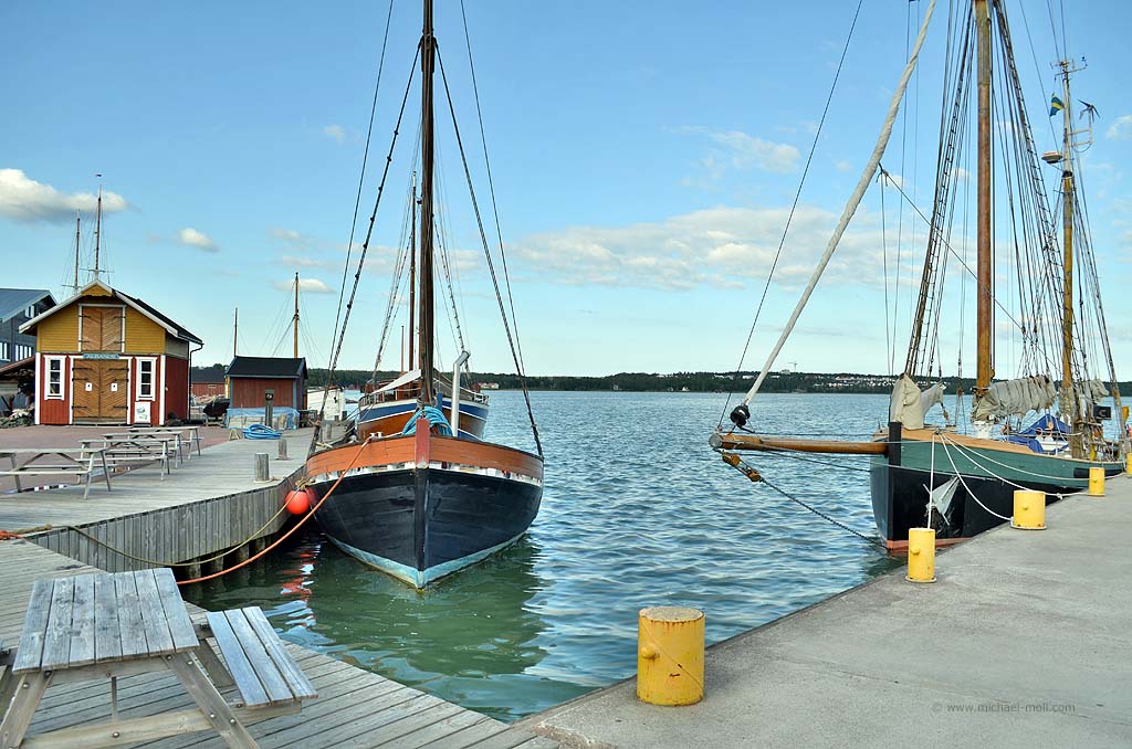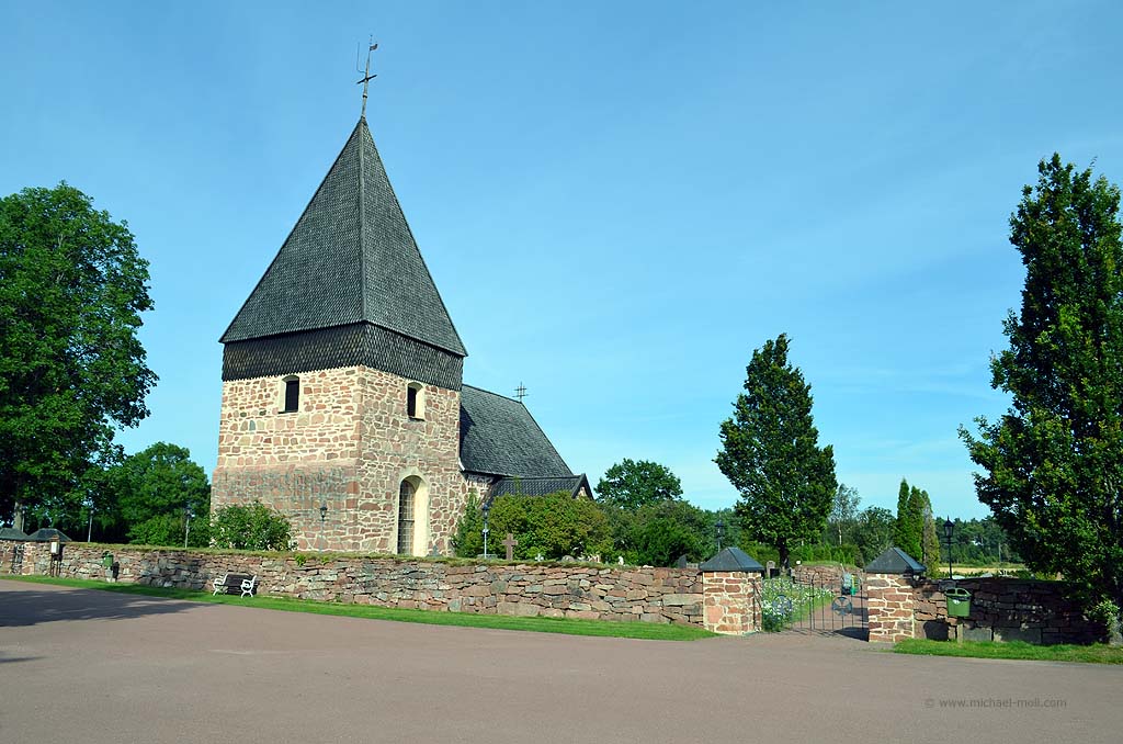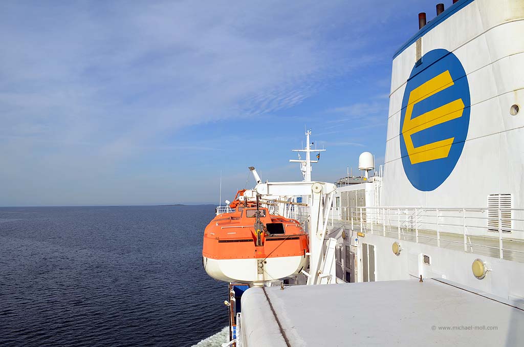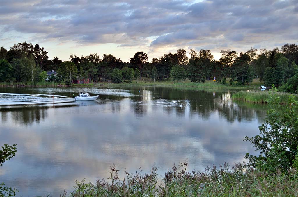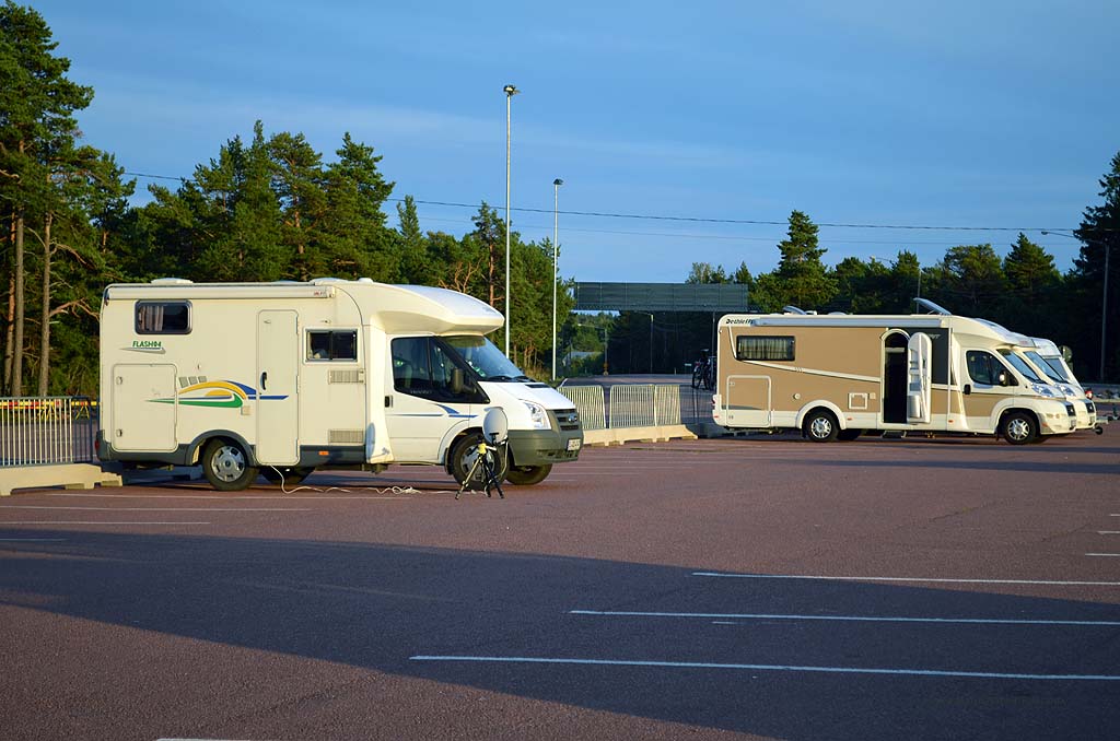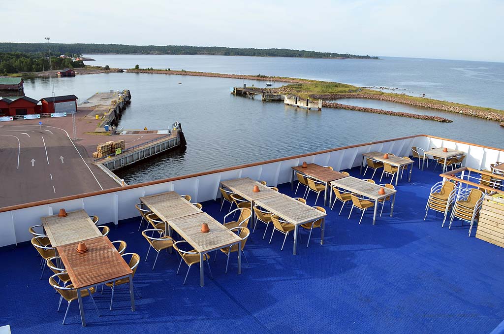 Über Hammarland fuhren wir nach Eckerö, der letzten Insel, die wir noch kennen lernen sollten. Hier besuchten wir die Kirche und übernachteten an dem kleinen Fähranleger, der nach Schweden führte. Wir konnten noch sehen, wie abends ein Schiff ablegte und zahlreiche Autos mitnahm, aber als das Schiff weg war, wurde es schön ruhig. Mit zwei anderen Wohnmobilen verbrachten wir eine ruhige Nacht.