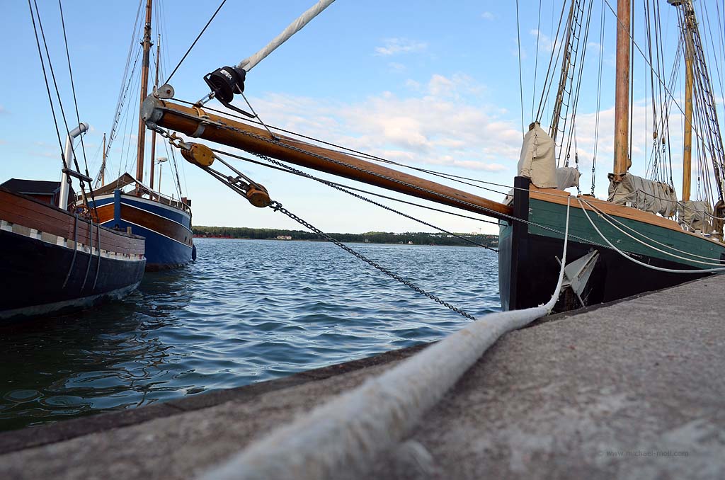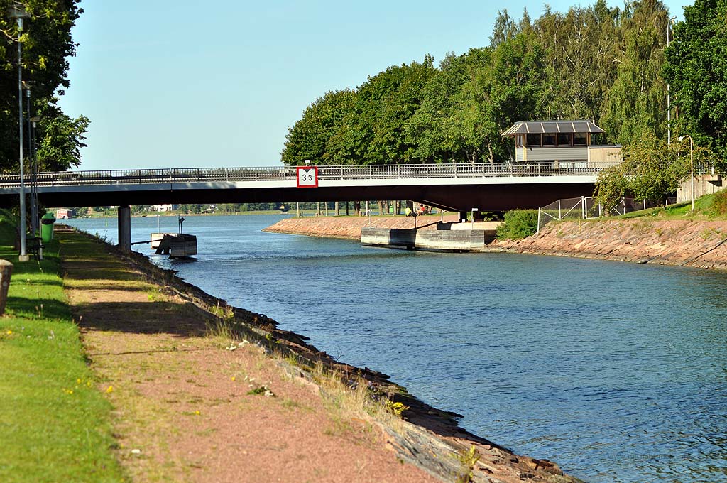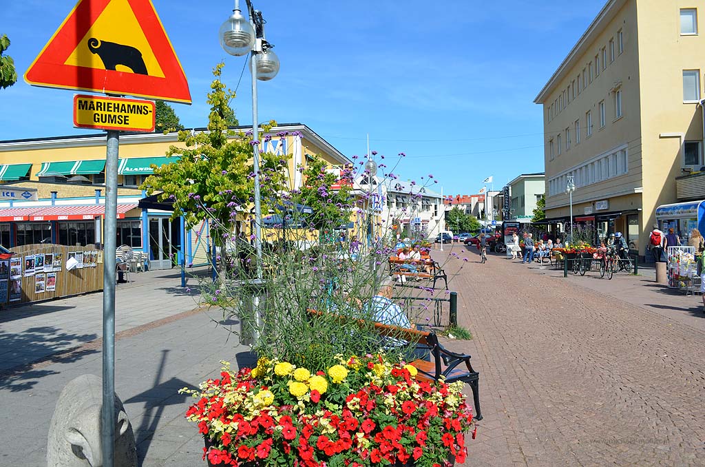 Nach dem Ausschlafen fuhren wir gemütlich mit unserem Wohnmobil über die Åland-Inseln und statteten dem Lemlandskanal noch einen Besuch ab, bevor wir ein drittes und letztes Mal in Mariehamn Halt machten. Noch einmal gingen wir durch den Ort, dieses Mal bei strahlend schönem Wetter. Anschließend hatten wir noch eine kurze Wanderung vorgehabt. Aber wir fanden diesen dusseligen Wanderweg einfach nicht, sondern hatten den Eindruck auf einem Privatweg herumzulaufen. Wir ließen es daher schnell bleiben und fuhren zum höchsten Punkt der Inseln. Ich dachte mir, auf so einer flachen Inselgruppe ist der höchste Punkt doch bestimmt markiert. Und irgendwie hatte ich so etwas auch in Erinnerung, mal im Internet gesehen zu haben. Also fuhren wir nach Ordals Klint bei Saltvik. Doch irgendwie waren wir falsch. Wir konnten die Kuppe vermutlich sehen, aber wir kamen nicht dran. Später habe ich an Hand unseres Tracks gesehen, dass wir nur 400 Meter entfernt waren. So kamen wir also nicht in den Genuss, den dortigen Aussichtsturm zu besteigen.