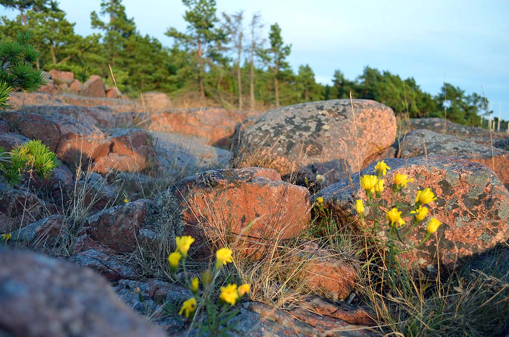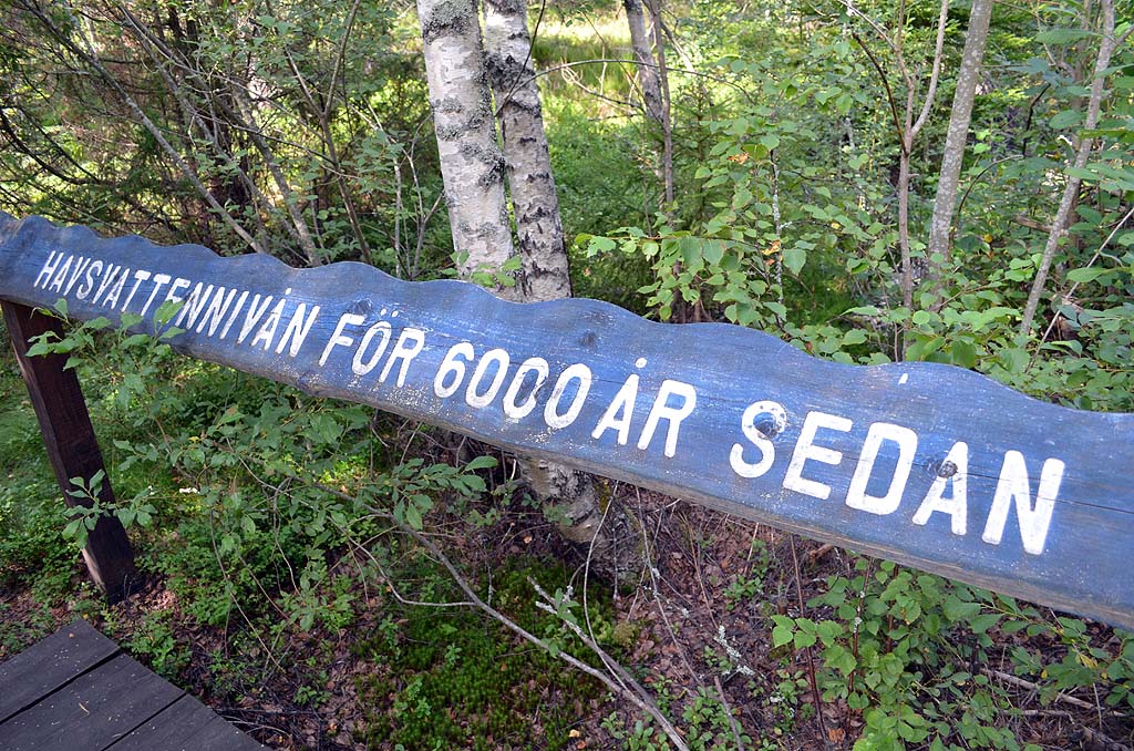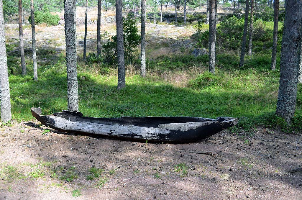 Das war aber eigentlich gar nicht schlimm, denn landschaftlich war das so schön hier, dass es uns nichts ausmachte, die Ruhe der Heidelandschaft zu genießen. Wir machten uns stattdessen auf den Weg, eine andere Sehenswürdigkeit zu besichtigen, nämlich den Ausgangspunkt der Besiedlungsgeschichte der Åland-Inseln. Auf einem Kulturstig, der uns nach Stenaldersbyn (Steinzeitdorf) führte, wanderten wir durch den Wald.