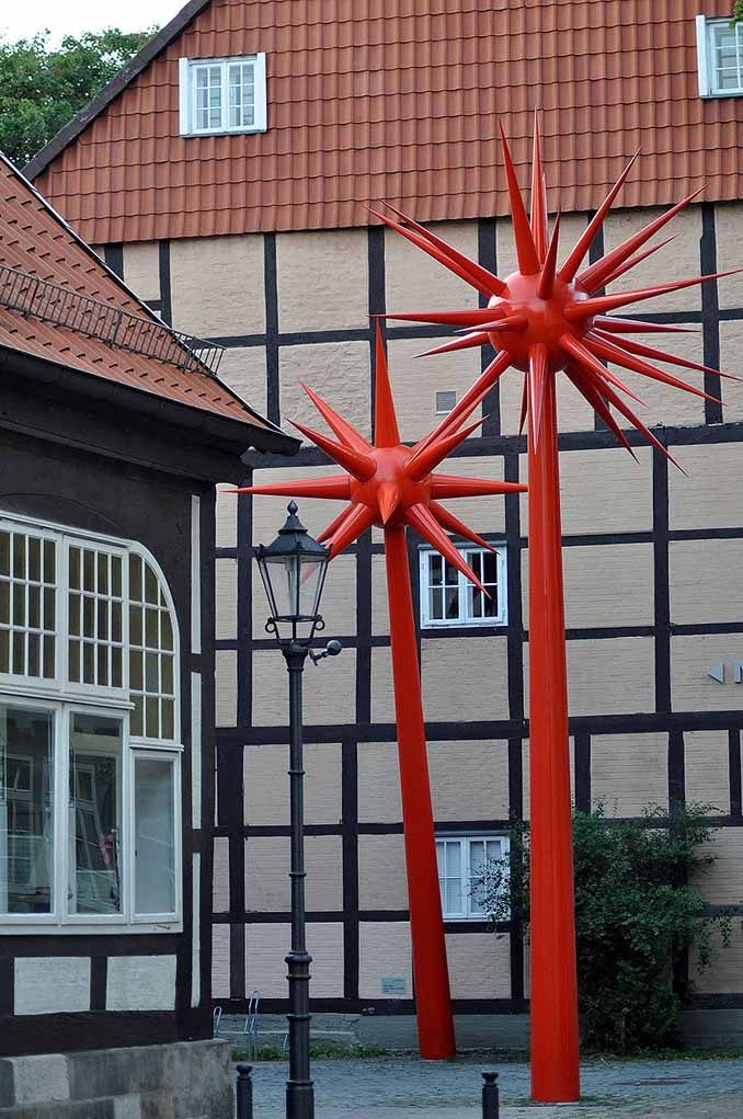 Auf dem riesengroßen Wohnmobilstellplatz in Celle ließen wir unseren Wagen zurück und machten uns in den Abendstunden auf, die hübsche Altstadt mit ihren zahlreichen Fachwerkbauten zu besichtigen. Interessant fanden wir aber auch die sprechenden Laternen, eine Kunstinstallation, in der Straßenlaternen scheinbar miteinander sprechen – ganz witzig. Am Abend bauten wir unsere Satellitenschüssel auf, stellten sie vor das Auto und waren eigentlich weit genug weg von den anderen Wohnmobilen. Doch gerade als wir einen Film schauten, kam ein Wohnmobil und parkte exakt neben uns und damit direkt vor der Satellitenschüssel. Dieser Mann muss einfach nur blind gewesen sein, was ich ihm auch direkt durch die Blume mitteilte. Überhaupt, was musste der eigentlich so dicht neben uns stehen? Dieser riesige Stellplatz bot noch Platz für zahlreiche Wohnmobile, die ausreichend Abstand zueinander gehabt hätten. Aber nein, er musste eineinhalb Meter neben uns parken. Kuschelcamping? Aber nicht mit mir. So schnell, wie der kam, war ich auch draußen und habe ihm meine Meinung gesagt.