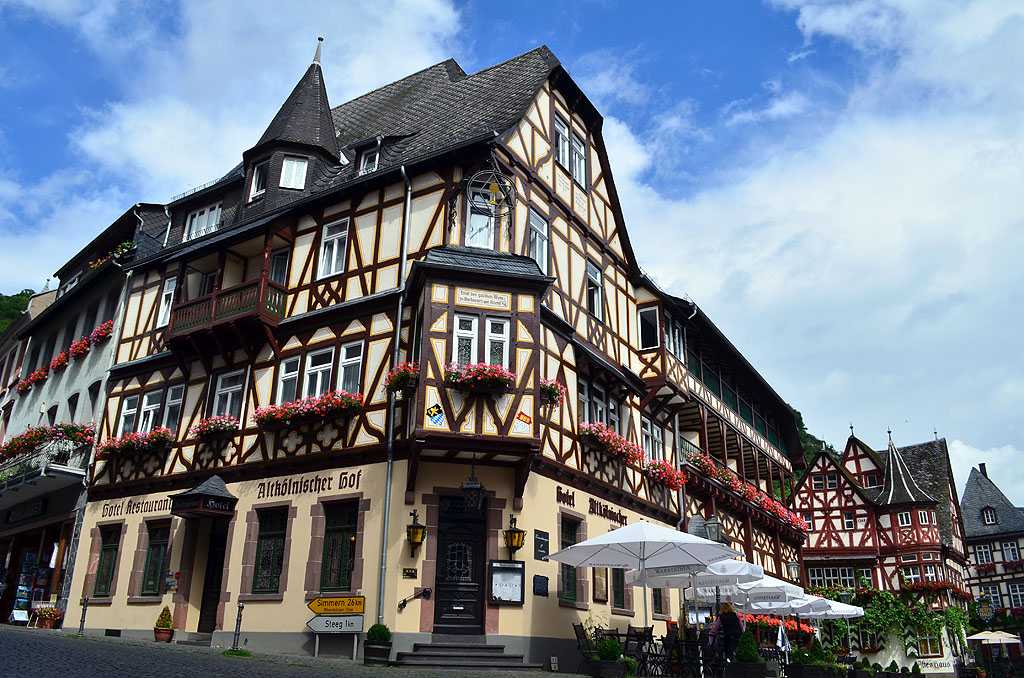 Nur ungefähr drei Kilometer vom Schloss Stolzenfels entfernt befindet sich die kleine, geschichtsträchtige Stadt Rhens. Wir können sie auf eigene Faust erkundigen oder an einer der beliebten Stadtführungen teilnehmen. Das malerische Ortsbild wird von der alten, gut erhaltenen Stadtmauer mit ihren zahlreichen Toren geprägt. Der historische Marktplatz, auf dem der schmucke Ochsenbrunnen steht, sowie das farbenprächtige Alte Rathaus aus dem früheren 16. Jahrhundert, werden von alten, kunstvoll gezimmerten Fachwerkhäusern umgeben. Kleine Gassen und bunte Häuser vermitteln uns eine angenehme Atmosphäre und laden zum Bummeln ein.