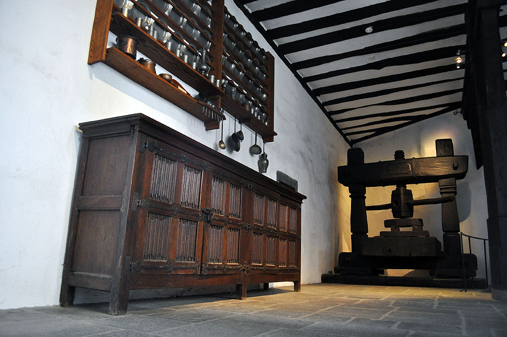 Von innen überrascht uns der Bau jedoch mit einem völlig anderen Aussehen: die Fassaden sind verputzt und gelb gestrichen. Sie wirken angenehm hell und friedlich im Gegenteil zu dem eher kargen, äußeren Erscheinungsbild.