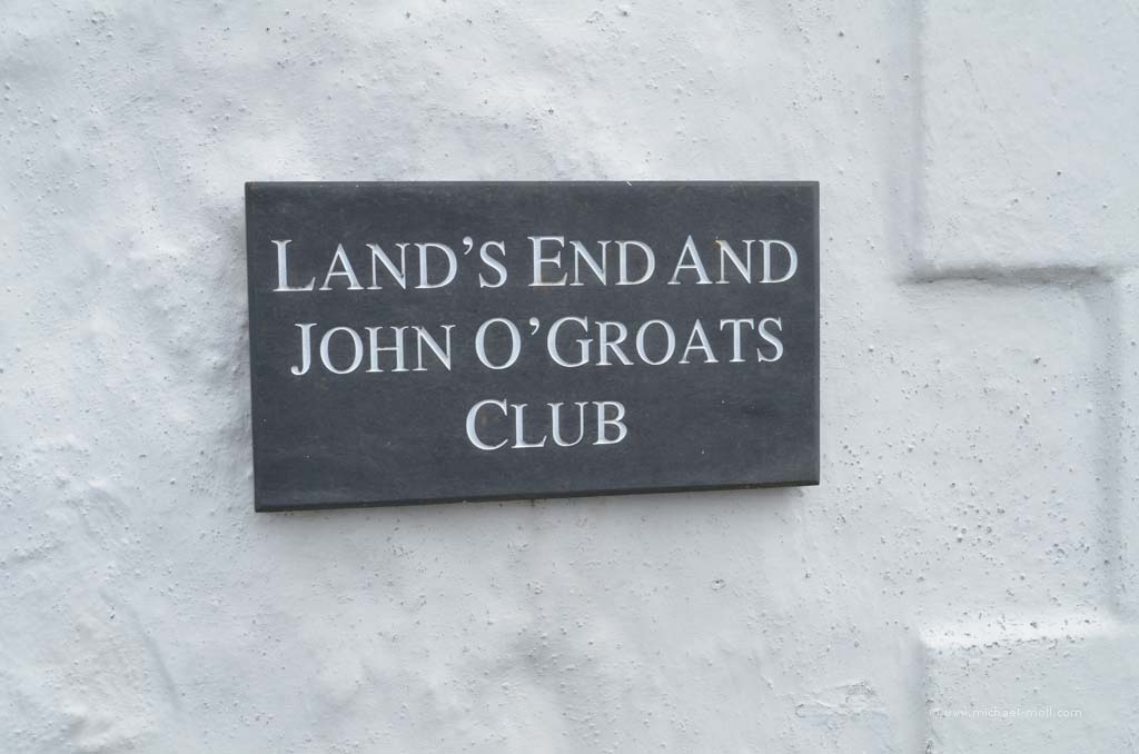 Nach der RMS Mülheim gingen wir wieder durch die Heide zurück und sahen einen Wegweiser, vor dem man sich fotografieren lassen kann. Exakt so einen Wegweiser, wie wir ihn auch in John o’Groats sahen. Scheinbar schienen die beiden Landeszipfel zu kooperieren. Fotografieren lassen wollten wir uns aber auch hier nicht. Dafür wurden wir gleich gegenüber auf etwas anderes aufmerksam. Dort befand sich das Büro eines End-to-End-Clubs. Wow. Es gab einen Club der beiden Landeszipfel? Das weckte natürlich sofort mein Interesse. Leider war die Tür verschlossen und niemand anwesend, doch nebenan gab es ein Atelier. Die Dame erklärte uns ein paar grundsätzliche Sachen und war auch nicht besonders in der Materie drin. Doch sie gab uns Anträge für eine Mitgliedschaft im End-to-End-Club mit, die auf einer Reise zwischen John o’Groats und Land’s End mindestens zwölfmal von Hotels, Campingplätzen und dergleichen abgestempelt werden müssen und verwies uns auf das benachbarte Hotel, wo man uns weitere Auskünfte geben könne. Nun war ich in meinem Element. Ich wollte wissen, was es damit auf sich hatte. Ich bin Mitglied im Eisbärenclub und im Royal North Cape Club. Wenn es hier ähnliches gibt, dann bin ich dabei. Außerdem las ich auf dem Antrag, dass es für die Absolvierung der Reise eine Urkunde gibt. Und das, wo ich doch geografische Zertifikate sammle.