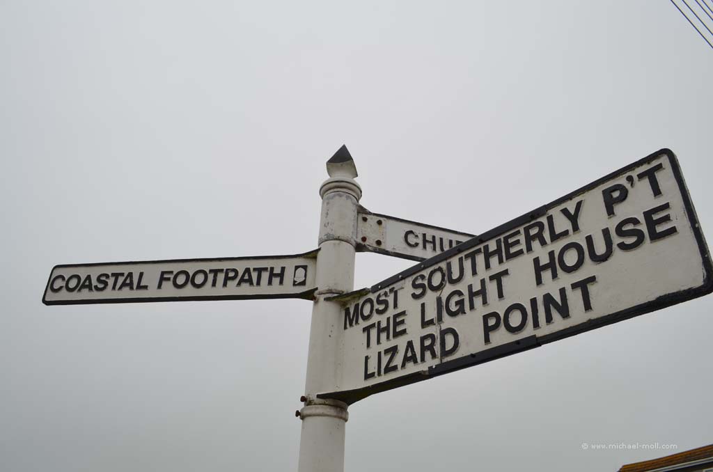 Wir gingen den Weg hinab zur Steilküste und sahen dort plötzlich ein Schild mit der Aufschrift Lizard Point. Ach? Also doch. Was hat diese Frau im Leuchtturm bloß für ein Problem? Oder war sie vielleicht noch nie hier? Vermutlich ist sie im Leuchtturm geboren und hat das Gebäude noch nie verlassen. Denn sonst wüsste sie, dass es rund 100 Meter weiter doch ein Schild gibt und dass in Irland der Euro das gültige Zahlungsmittel ist und Nordirland zu Großbritannien gehört und somit dort Pfund ausgegeben wird.