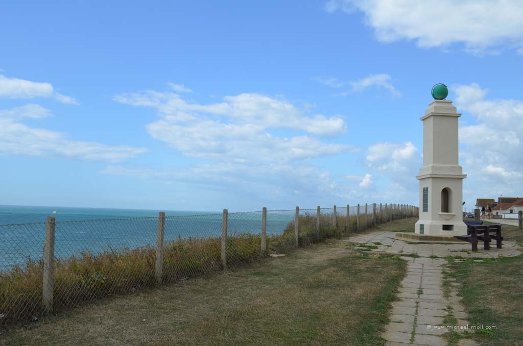 Dafür erreichten wir Newhaven, wo sich direkt an der Küste eine Meridiansäule erhebt. Denn auch hier verläuft der Nullmeridian. Aber anders als in Greenwich scheint das hier niemanden zu interessieren. Kein Mensch war vor Ort. Nur wir. Also haben wir Pingu dort hingesetzt und ein Foto gemacht. So hatten wir nun auch unseren Nullmeridian, der übrigens in Wahrheit laut GPS-Gerät einige Meter weiter östlich verläuft.
