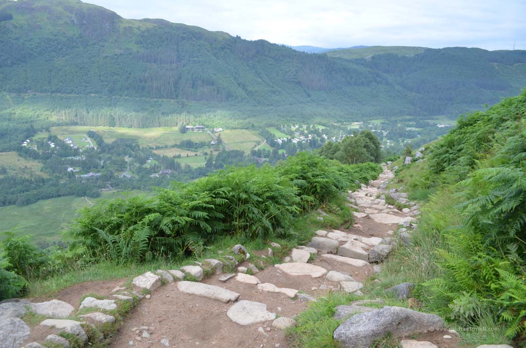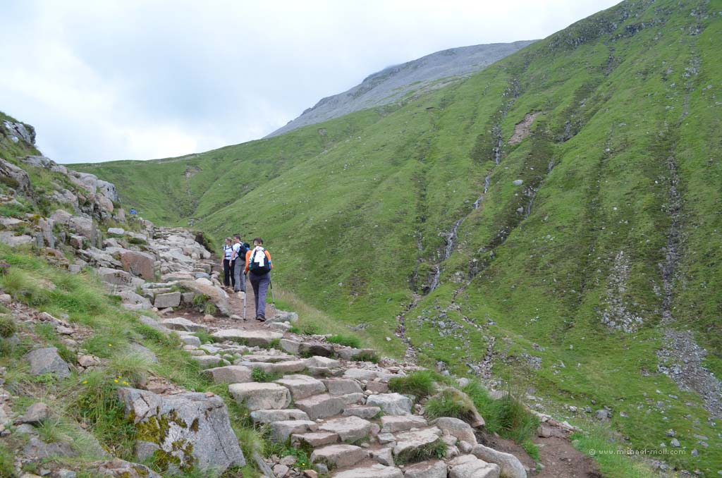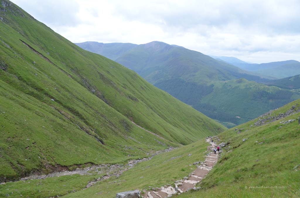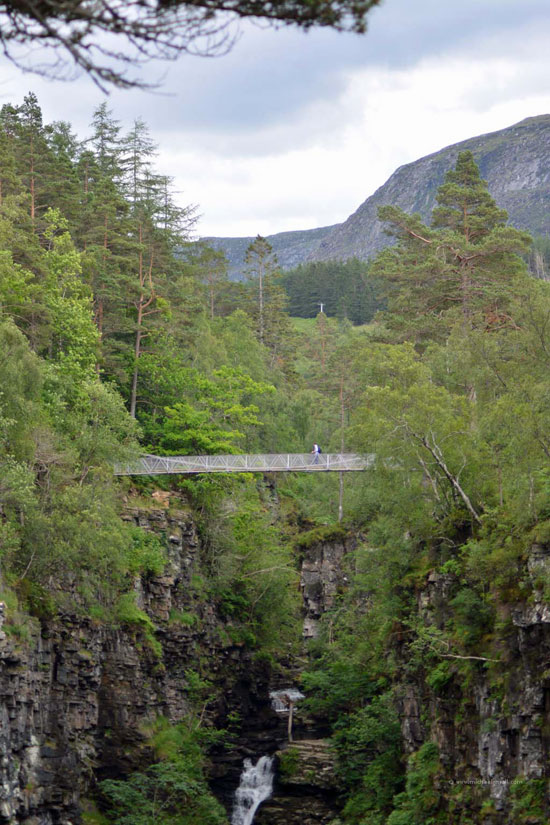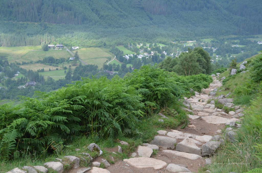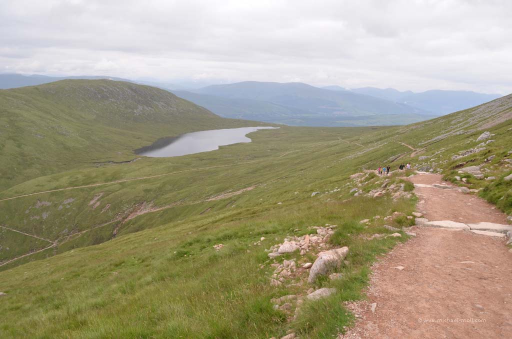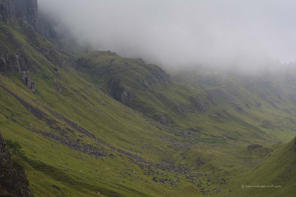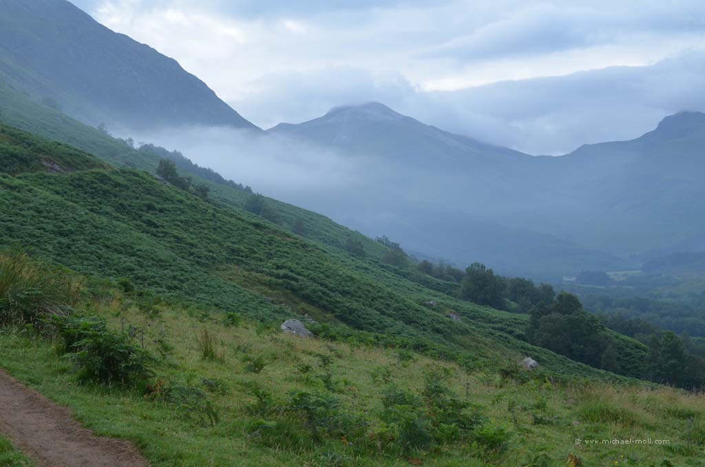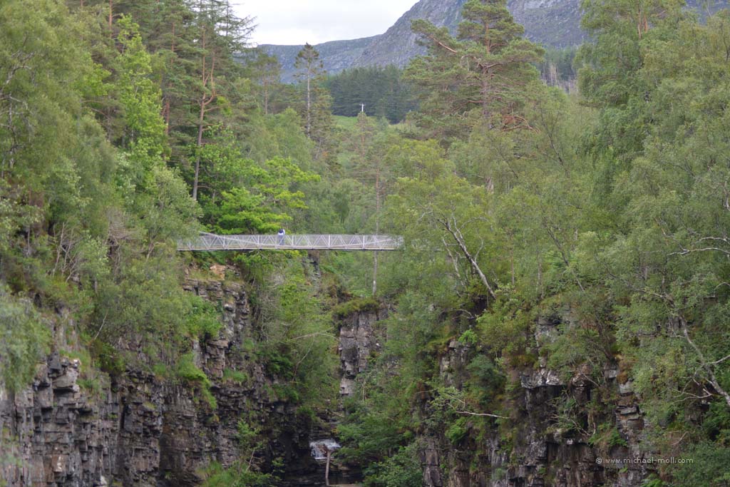 Doch auch hier konnten wir das sehen, was wir schon am Tag zuvor am Knockan Crag beobachteten: Die Besucher wählen den kürzesten Weg zur Sehenswürdigkeit. Es gab nämlich einen direkten, schnellen Weg vom Parkplatz hinab zur Schlucht und einen kleinen Umweg von ganzen 800 Metern, der langsam bergab und dabei durch eine schöne Wiesenlandschaft führte. Auch hier waren wir wieder die Einzigen, die sich für den längeren Weg entschieden. Dieses Phänomen ist natürlich nicht unbekannt, aber immer wieder traurig zu beobachten. Andererseits haben wir auf diese Weise den Weg für uns alleine.