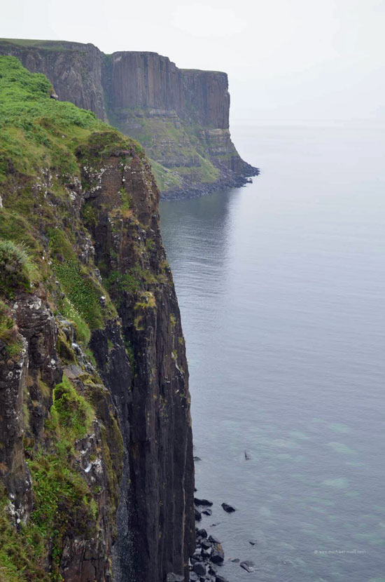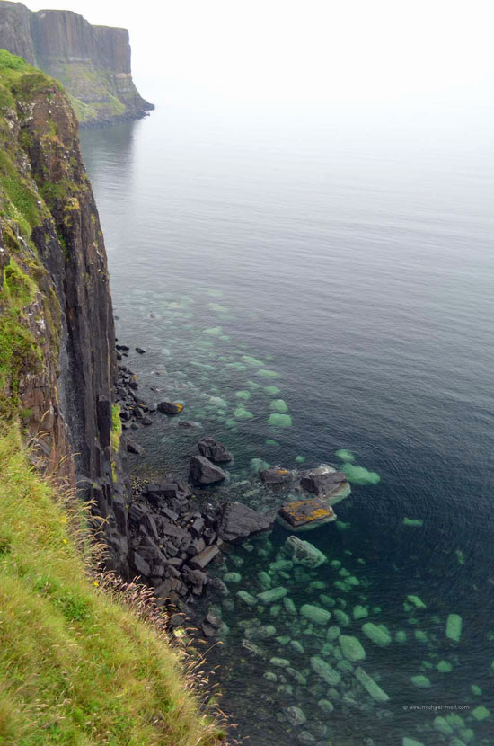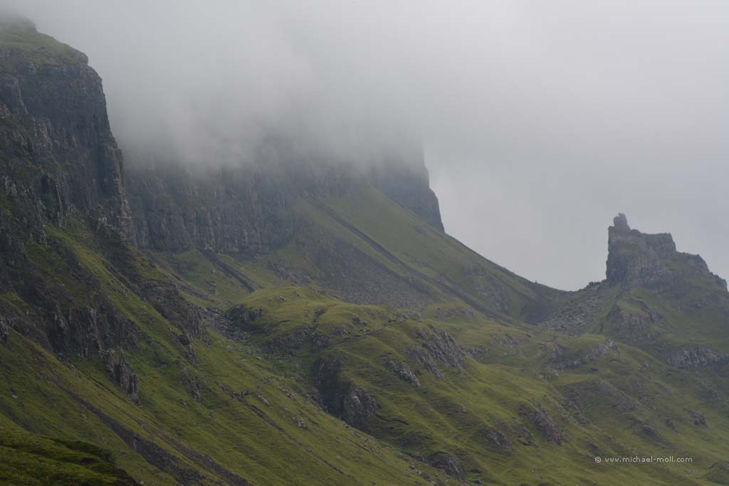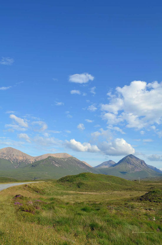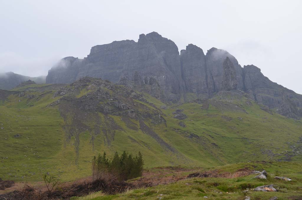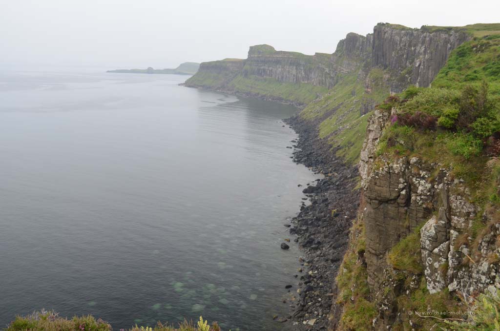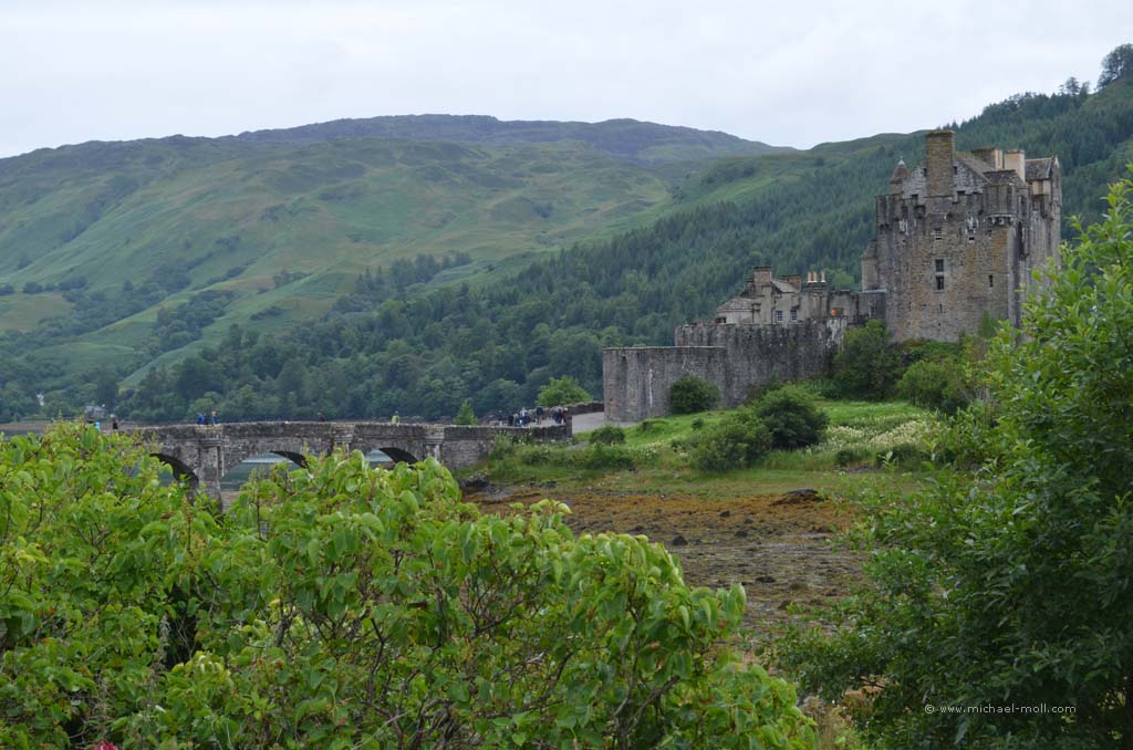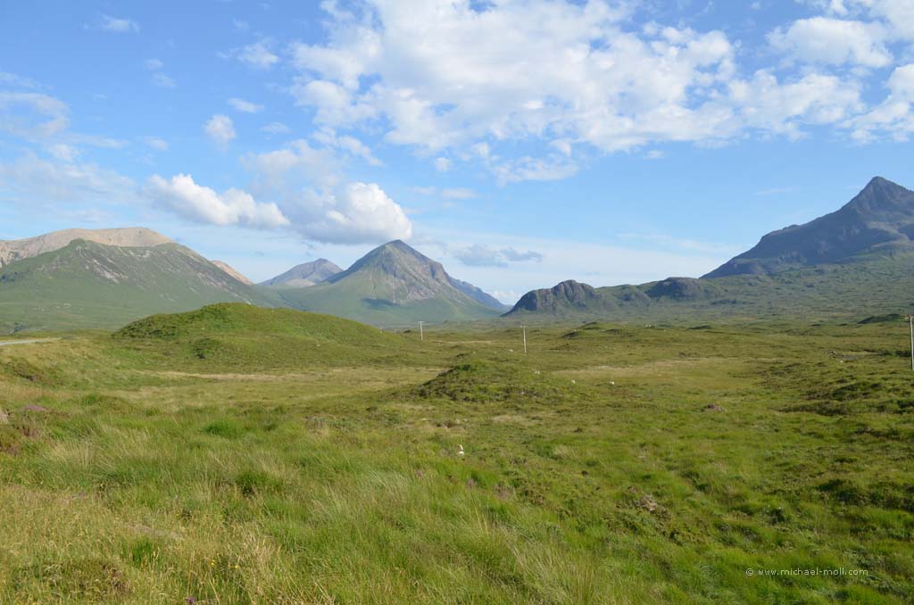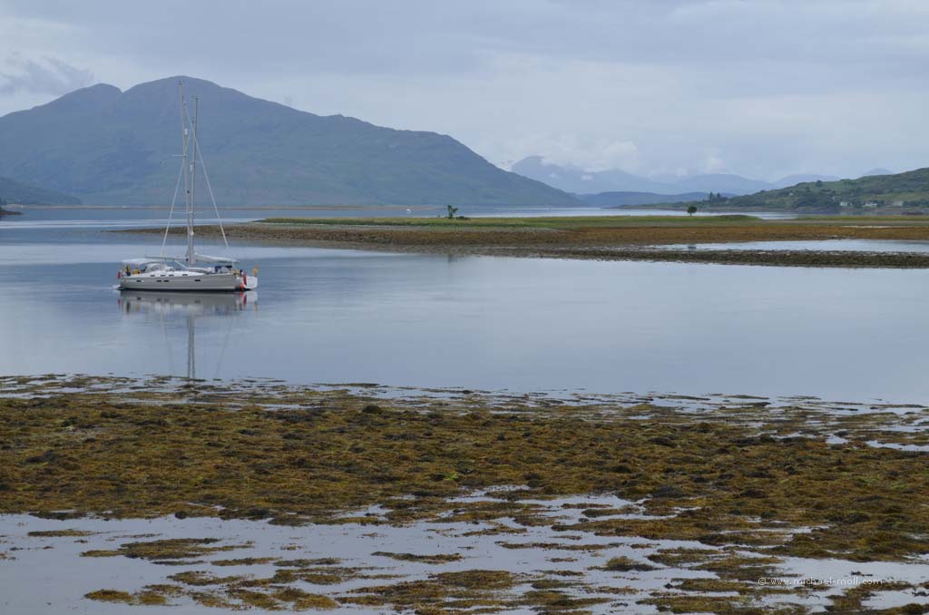 Der Fluss mündete in den gleichnamigen Loch Carron, wo sich die Straße deutlich verjüngte und stellenweise sehr eng wurde. Anschließen überquerten wir einen kleinen Höhenzug und bogen an der A87 nach rechts ab. In Kyle of Lochalsh endet die Zugstrecke, dafür begann dort für uns der Aufenthalt auf der Isle of Skye. Über die markante Skye Bridge und folgten der Straße bis Broadford, wo wir mal wieder tankten und einen Supermarkt aufsuchten.