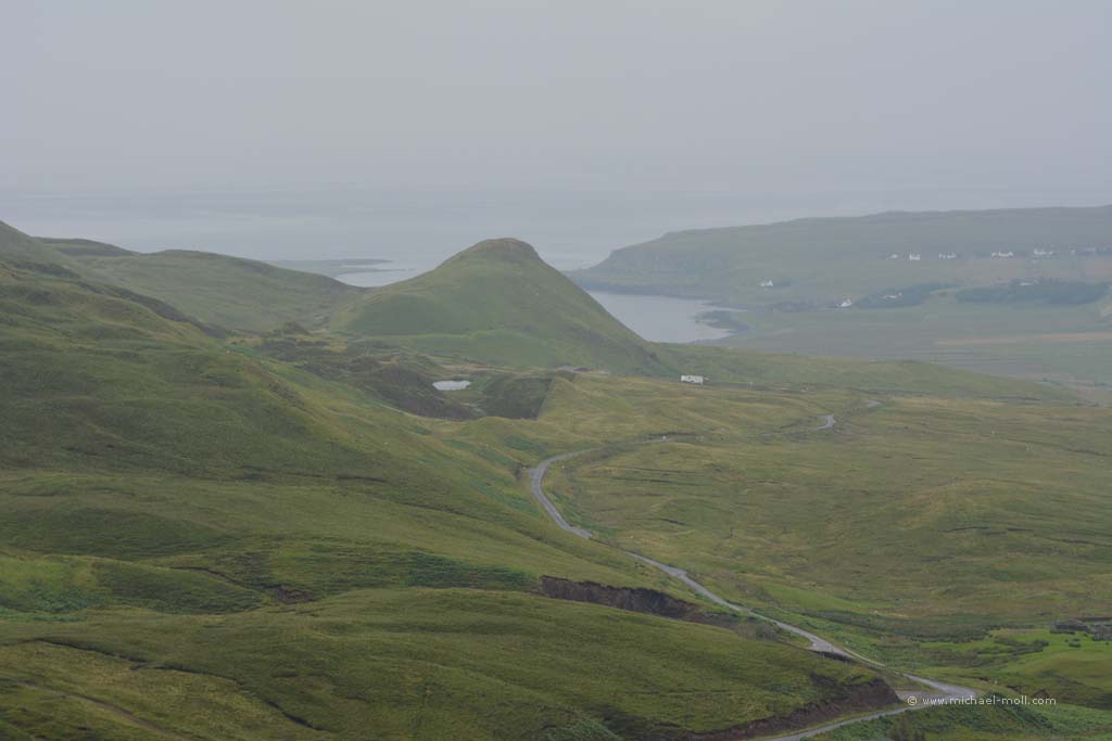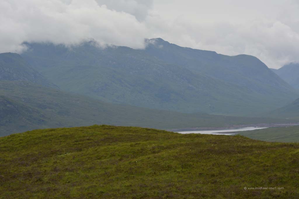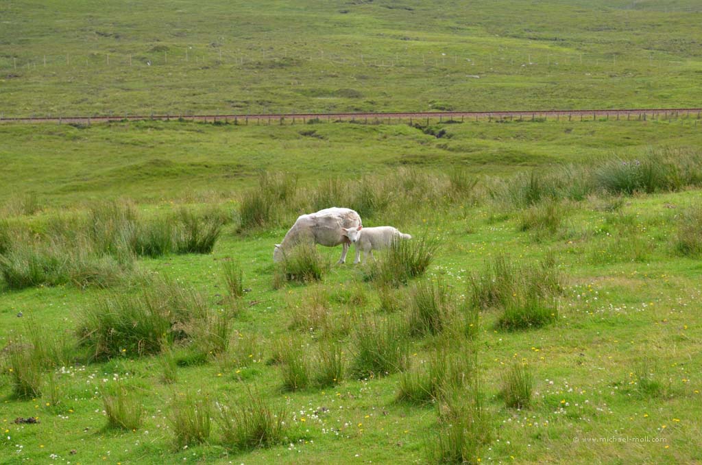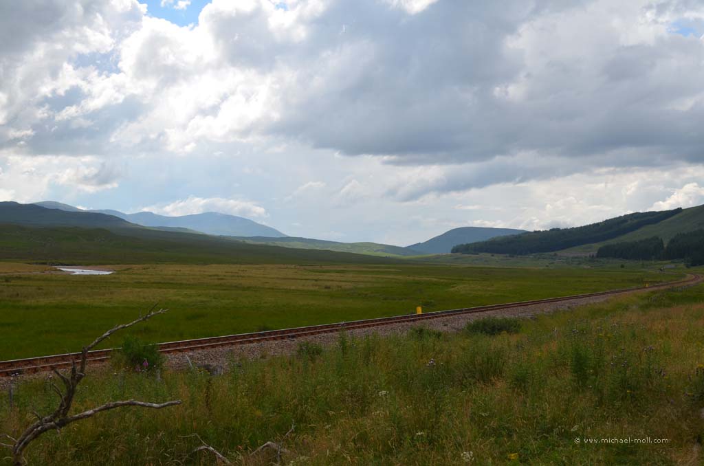 Nach dem Besuch der Measach-Wasserfälle ging es wieder daran, Kilometer abzuspulen. Wir wollten noch heute zur Isle of Skye. Dafür fuhren wir durch das Tal des River Carron, das mich teilweise sehr an die Mongolei erinnerte: Weite grüne Landschaften mit sanften Kuppen am Horizont und eine Bahntrasse, die sich durch das Tal schlängelt.