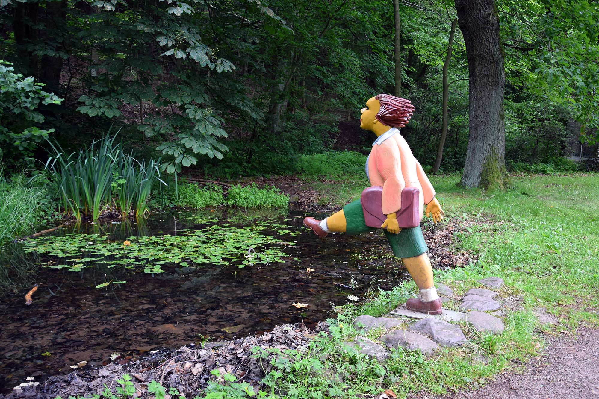 Ausklingen ließen wir den Tag auf dem Wohnmobilstellplatz in Tabarz, den wir schon von früheren Besuchen kannten, denn erst zwei Jahre zuvor waren wir auch mit dem Wohnmobil in Thüringen unterwegs, als ich in Zella-Mehlis eine Ausstellung meiner Bilder hatte. In Tabarz befindet sich auch die Märchenwiese mit Holzschnitzereien von zahlreichen Märchen, die ich als brutal bezeichnen würde. Altes Kindheitstrauma.