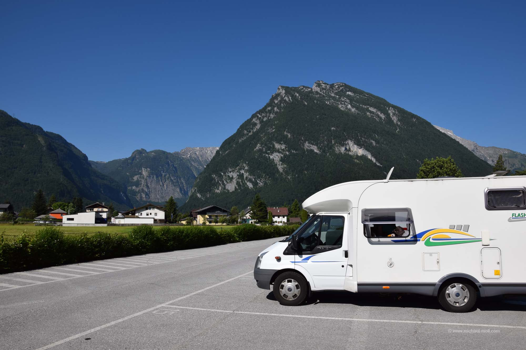Für uns war der Ort nämlich von Interesse, weil es einen Wohnmobilstellplatz in Golling gibt. Was wir alle allerdings erst wenige Tage vor der Reise erfuhren, war, dass der gesamte Ortskern für eine Art Bikertreffen gesperrt war. Das hielt uns natürlich nicht ab, daran teilzunehmen und uns nach einem leckeren gemeinsamen Essen zu verabschieden. Für Moni und mich war das etwas Besonderes, dass wir in Begleitung einer Person waren, die wir bis dato nur aus der virtuellen Welt kannten. Aber es hat uns echt Spaß gemacht und wir würden das gerne irgendwann wiederholen. In diesem Sinne: Danke! 😉