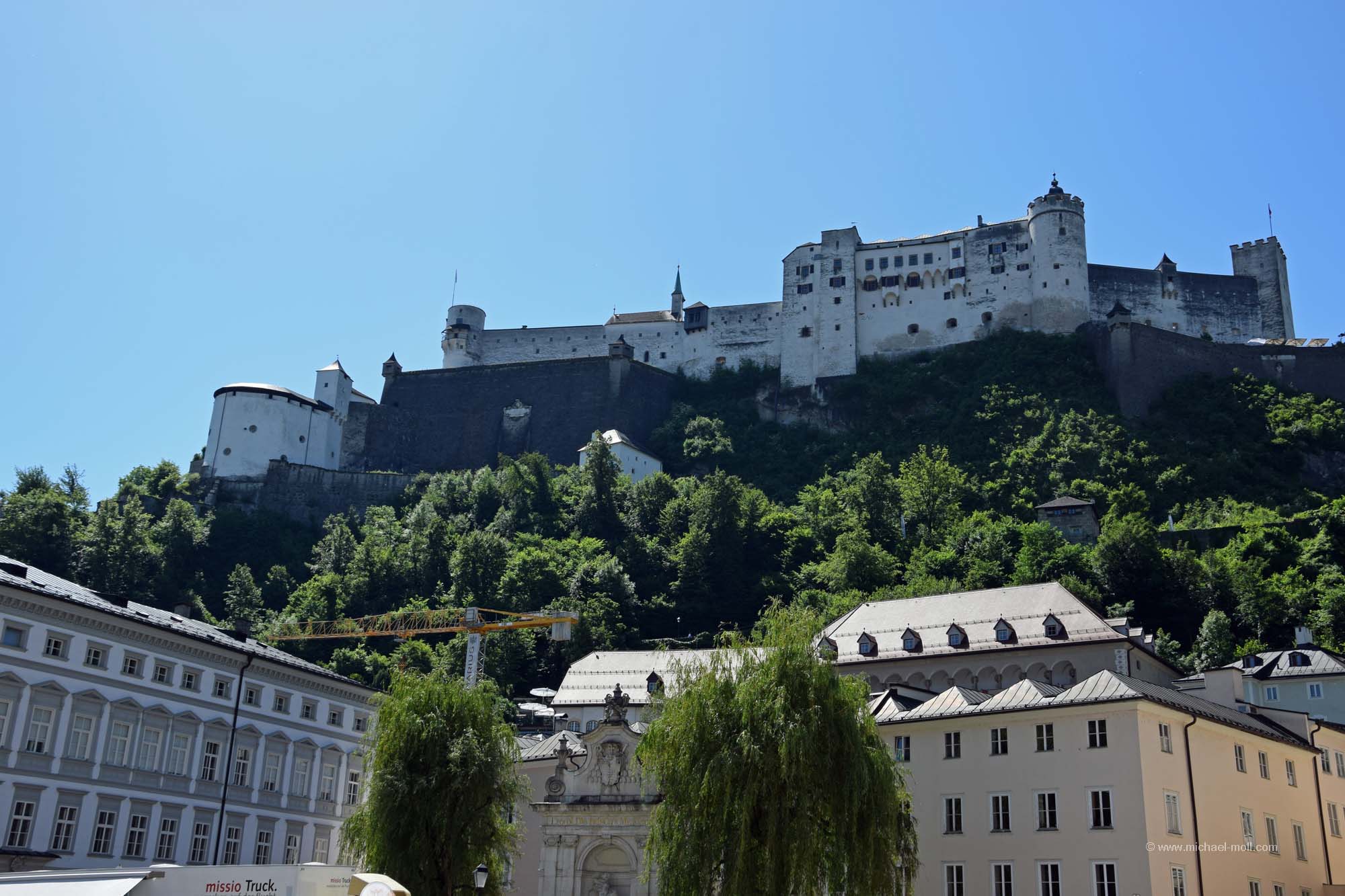 Am folgenden Tag waren wir nun wieder alleine und steuerten Salzburg an. Darauf hatte ich wenig Lust, weil Salzburg nicht gerade als wohnmobilfreundlich bezeichnet werden kann. Einen Stellplatz gibt es nicht und Parken ist nur weit außerhalb möglich. Wir versuchten zwar kurz, etwas näher an die Altstadt heranzukommen, weil an diesem Sonntagmorgen sehr wenig Verkehr war, aber es war nicht von Erfolg gekrönt.