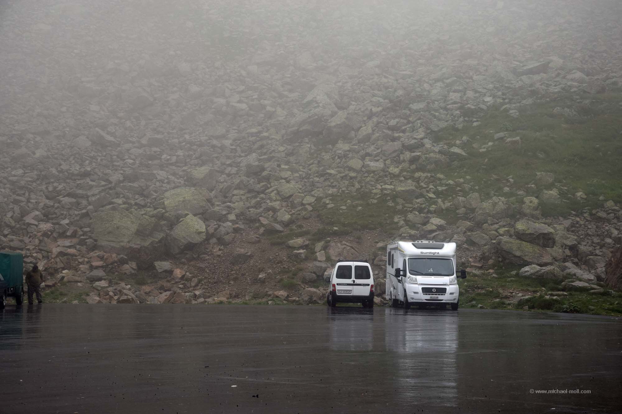 Auf der rechten Seite wartete ein Weltkulturerbe auf uns – das Kloster von Müstair. Allerdings entschieden wir uns gegen einen Besuch von innen und besichtigten es nur von außen. Unser Hauptaugenmerk lag an diesem Tag auf dem Schweizerischen Nationalpark, dem einzigen Nationalpark in der Schweiz. Dieser folgte nämlich, zusammen mit dem Ofenpass, als nächstes. Die Passhöhe war schnell erreicht, allerdings roch unser Wagen oben leicht nach Motorwärme. Aber wir schnupperten uns ein wenig über den Parkplatz und stellten fest, dass es anderen Fahrzeugen ähnlich ging. Dummerweise erreichten wir mit dem Ofenpass auch eine ziemliche Schlechtwetterfront. Zugegeben, schön war es schon vorher nicht. Aber jetzt wurde der Himmel dunkelgrau und es regnete ohne Unterlass.