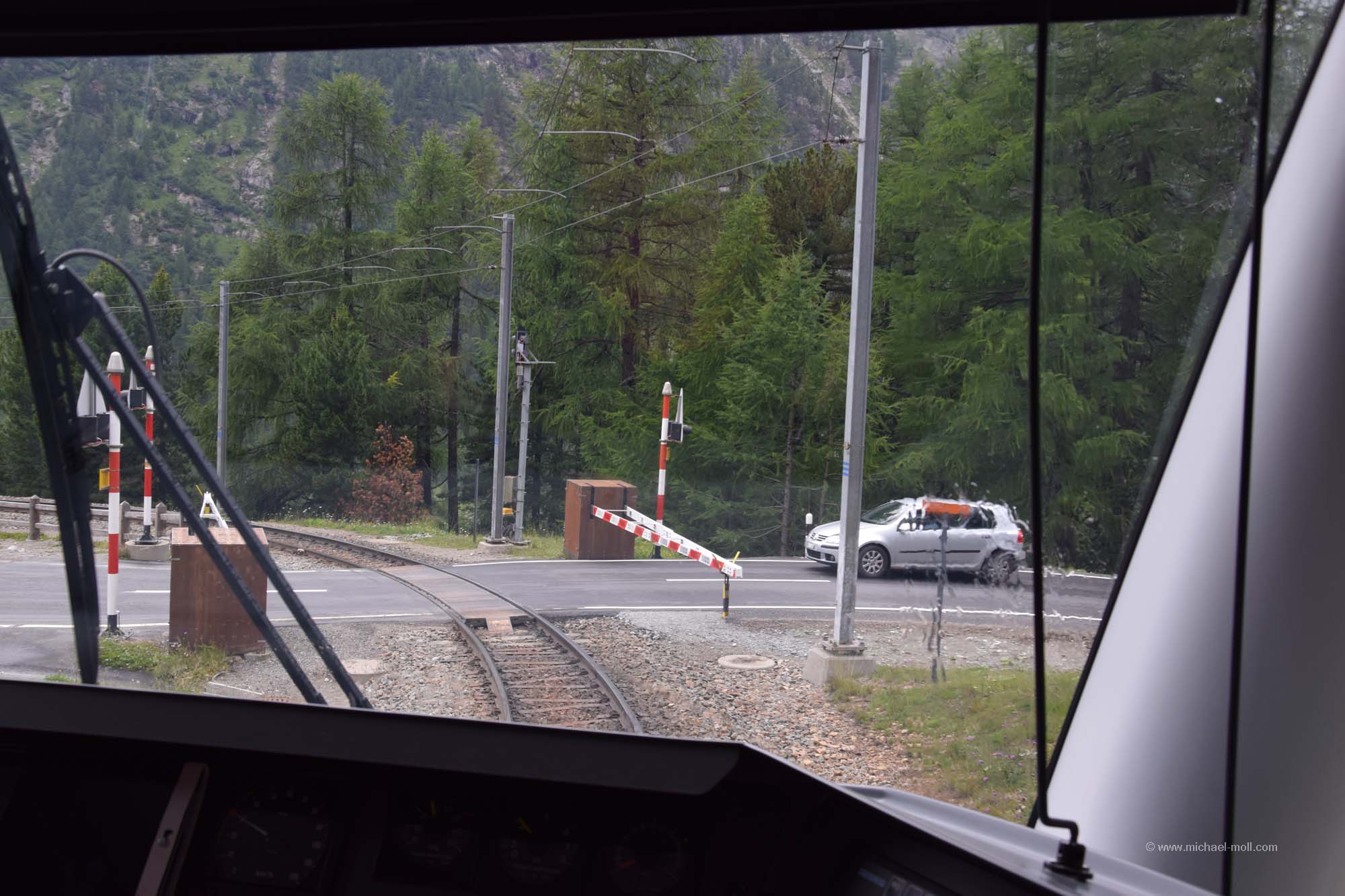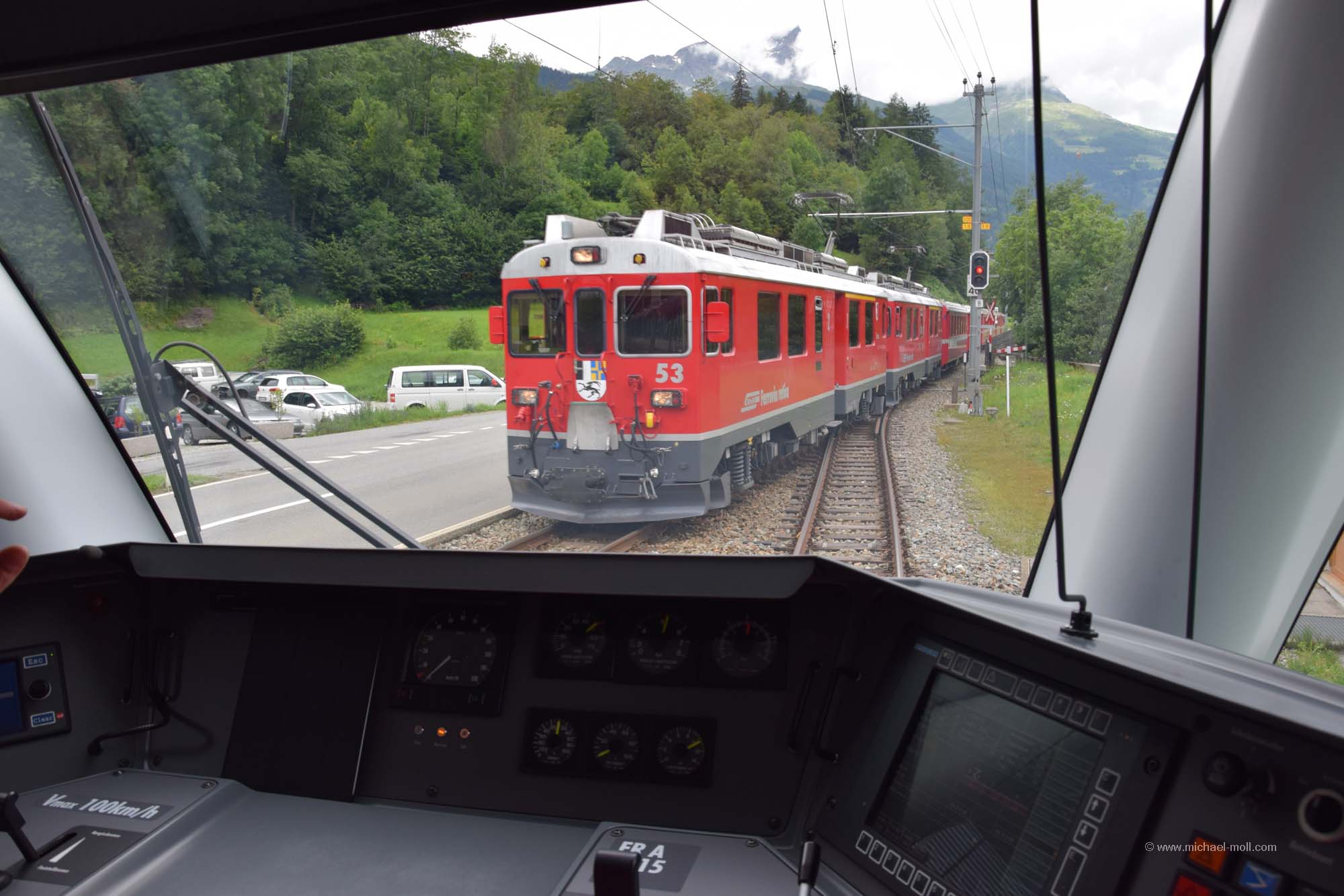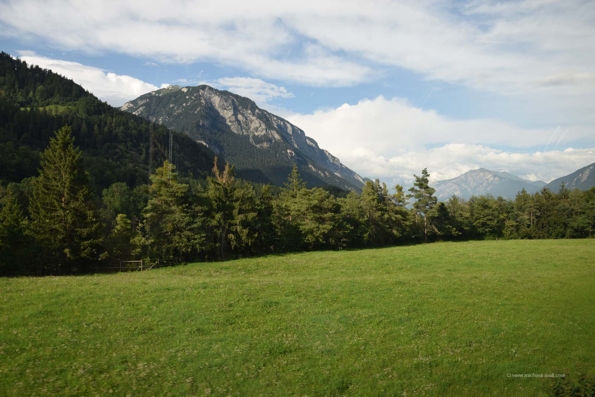 Anschließend begaben wir uns noch nach unten, wo wir direkt vor der Brücke abermals Fotos machten. Ich kam mir vor wie ein Trainspotter, aber sehenswert ist das Ganze in der Tat. Nach der Fotosession fuhren wir ein kurzes Stück auf der Autobahn, bogen kurz vor Chur ab, wo wir später noch hinkämen und fuhren durch das Rheintal bergauf.