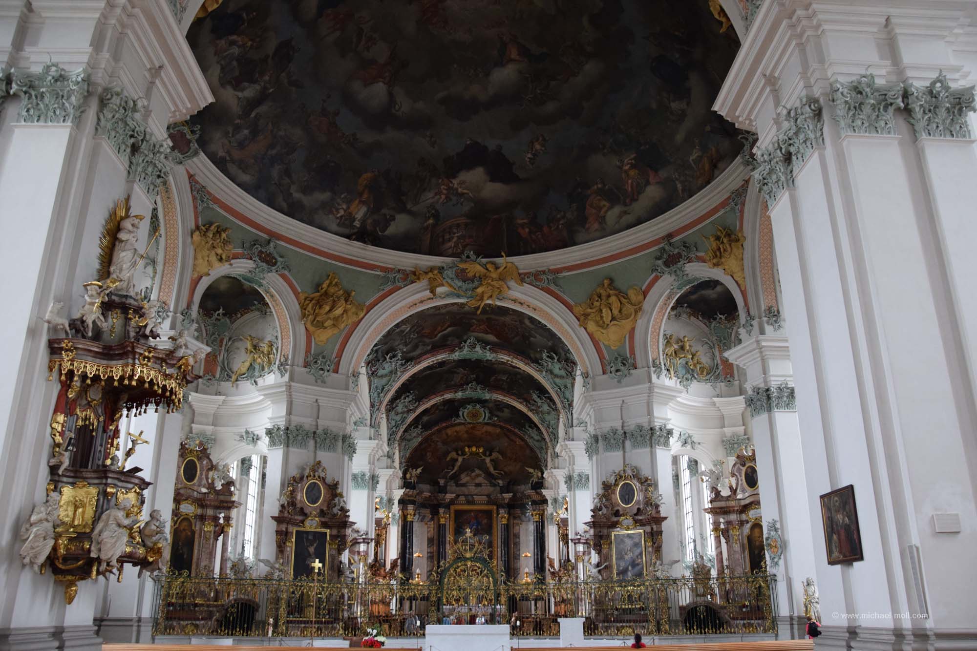 Das war aber nicht unsere Sorge. Wir parkten ein, schnappten unsere Klamotten und zogen zu Fuß weiter. Denn mittlerweile hatte wenigstens der Regen aufgehört und es kam sogar ein wenig blauer Himmel zum Vorschein. Also gingen wir ein kleines Stück auf dem Fußweg durch einen Wald, passierten das Hotel Kempinski und spazierten am St. Moritzersee vorbei in das Zentrum von St. Moritz. Es war natürlich nicht mehr viel los, weil wir schon spät dran waren. Aber trotzdem bekamen wir einen guten Eindruck von der Stadt, in der wir auch prompt von einem Edelklasse-Auto inkl. Chauffeur überholt wurden. Ganz interessant war auch die öffentliche Rolltreppe, die vom Seeufer hinauf in die Stadt führte und auf der man die Decks der Tiefgarage passiert. Schon alleine diese Rolltreppe strahlte Eleganz aus.