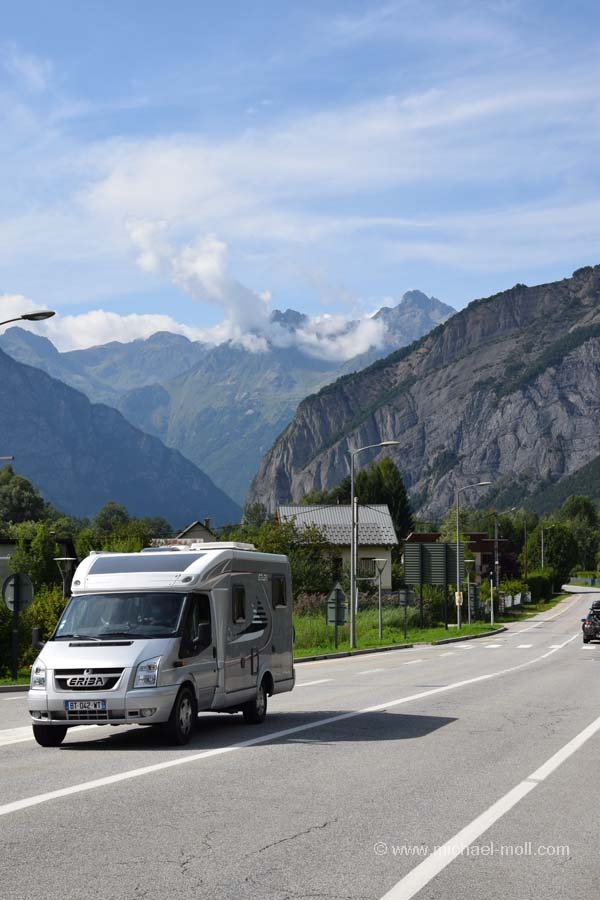 Nach dem ausgiebigen Rundblick machten wir noch eine kurze Fahrt mit dem Wohnmobil durch den Tunnel, der sich direkt unter dem Gipfel befindet und standen somit auch an der höchstgelegenen Ampel Europas. Nach Norden hin verließen wir den Pass und steuerten langsam und gemütlich den Wagen bergab. Durch weiterhin wunderschöne Landschaften fuhren wir bis Valloire, wo man anschließend nochmal einhundert Höhenmeter hinauf fahren muss. Man erreichte den Col du Télégraphe als weiteren Gebirgspass und dann geht es nochmal so richtig bergab. War es bis hierhin ein Kinderspiel, so ging die Fahrt nun in engen Kurven hinab in das Tal des Flusses Arc. Das ließ ich natürlich recht ruhig angehen, war allerdings auf diese Bergfahrt nicht vorbereitet. Vielleicht empfand ich sie deswegen als etwas anstrengend. Aber egal, anschließend waren wir im Tal und konnten auf der Autobahn mal wieder nach langer Zeit Kilometerfressen. Bis Albertville fuhren wir durch und hatten eigentlich auch vorgehabt, auf dem Wohnmobilstellplatz in Albertville zu übernachten. Aber unser Rundgang durch die kleine Altstadt war so schnell um, dass wir keine Lust hatten, den ganzen Nachmittag auf einem tristen Parkplatz zu verbringen. Schon gar nicht, wenn man erst wenige Stunden zuvor an einem der wohl schönsten Aussichtspunkte Europas stand.
