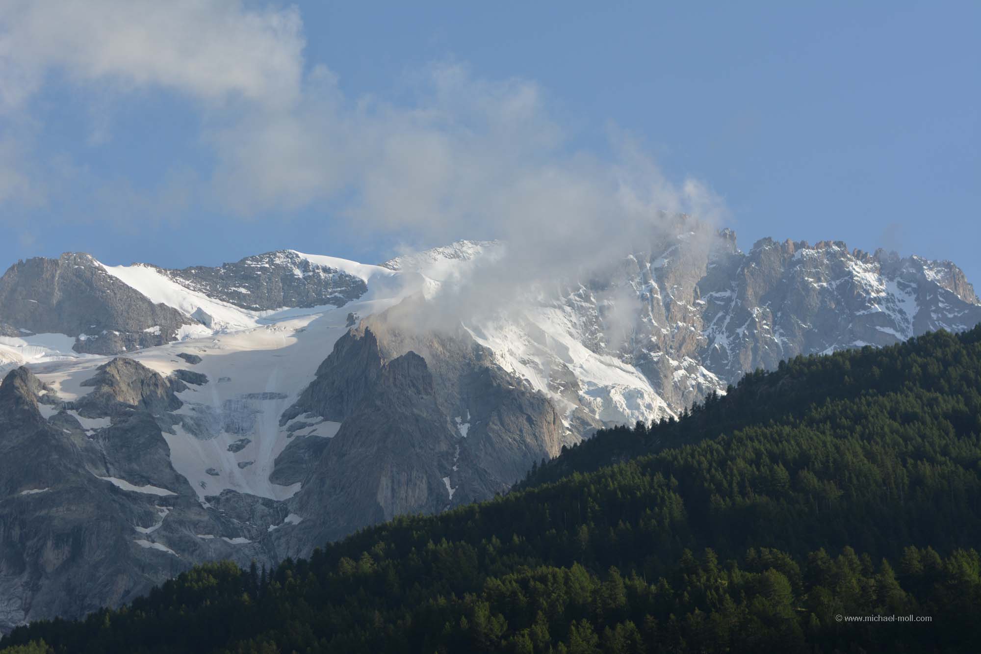 Nach einer ruhigen Nacht spazierten wir auch am nächsten Morgen nochmals durch Chamonix, denn das Wetter war nun deutlich besser und der Mont Blanc zeigte sich in seiner vollen Pracht. Auf den Fotos die wir machten, stellten wir aber erst im Nachhinein fest, dass wir sogar Wandergruppen auf dem Mont Blanc fotografierten bzw. sehen konnten.