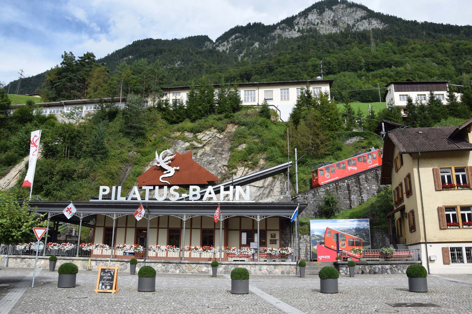 Es reichte uns an Problemen für diesen Tag und wir fuhren nun zum Stellplatz in Giswil. Das sollte reichen. Der nächste Morgen war der letzte für uns in der Schweiz. Doch bevor wir der Alpenwelt komplett Tschüß sagten, fuhren wir nach Alpnachstad, wo wir noch mit der steilsten Zahnradbahn der Welt auf den Pilatus fahren wollten. Wir hatten das ja schon bei unserem Aufenthalt in Horw bei Luzern vorgehabt, es aber wegen der Wetterlage verschoben. Nun war es soweit und es war eine interessante Erfahrung, mit der Bahn hinauf zu fahren. Ich saß zum Glück in Fahrtrichtung, wo ich normalerweise sonst keinen großen Wert drauf lege. Aber in diesem Fall war ich ganz froh, da ich nicht nach hinten bzw. unten blicken wollte. Mir gegenüber saß jedoch eine ältere Dame, die völlig aufgeregt über die schöne Bergwelt ständig aufsprang und ihren Kopf aus dem Fenster hielt. Und das, obwohl die Schilder dies zu Recht untersagten. Denn immer wieder gab es Tunnel und Anlagen, die recht dicht an der Bahn vorbeizogen. Hätte sie wenigstens beim Rausgucken in Fahrtrichtung geschaut und somit rechtzeitig die Hindernisse gesehen, dann wäre das ja noch halb so schlimm gewesen. Doch sie guckte nie nach vorne, sondern immer nach hinten. Das war mir irgendwann zu blöde und ich sagte ihr, dass sie sich bitte setzen solle, weil sie mich nervös macht. Mit einem verwunderten Blick schaute sie mich fragend an und ich erklärte ihr, dass ich nicht ihre Gehirnmasse auf meinem Schoß verteilt haben wollte, wenn sie von irgendeinem Pfeiler getroffen werden würde. Das half. Von dem Moment an saß sie mir ganz ruhig gegenüber. Beim Aussteigen auf dem Gipfel entschuldigte sie sich noch einmal und bedankte sich für den Hinweis, dass sie einfach nicht mitgedacht habe.