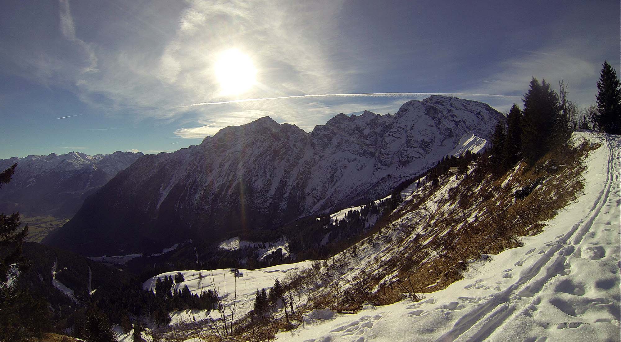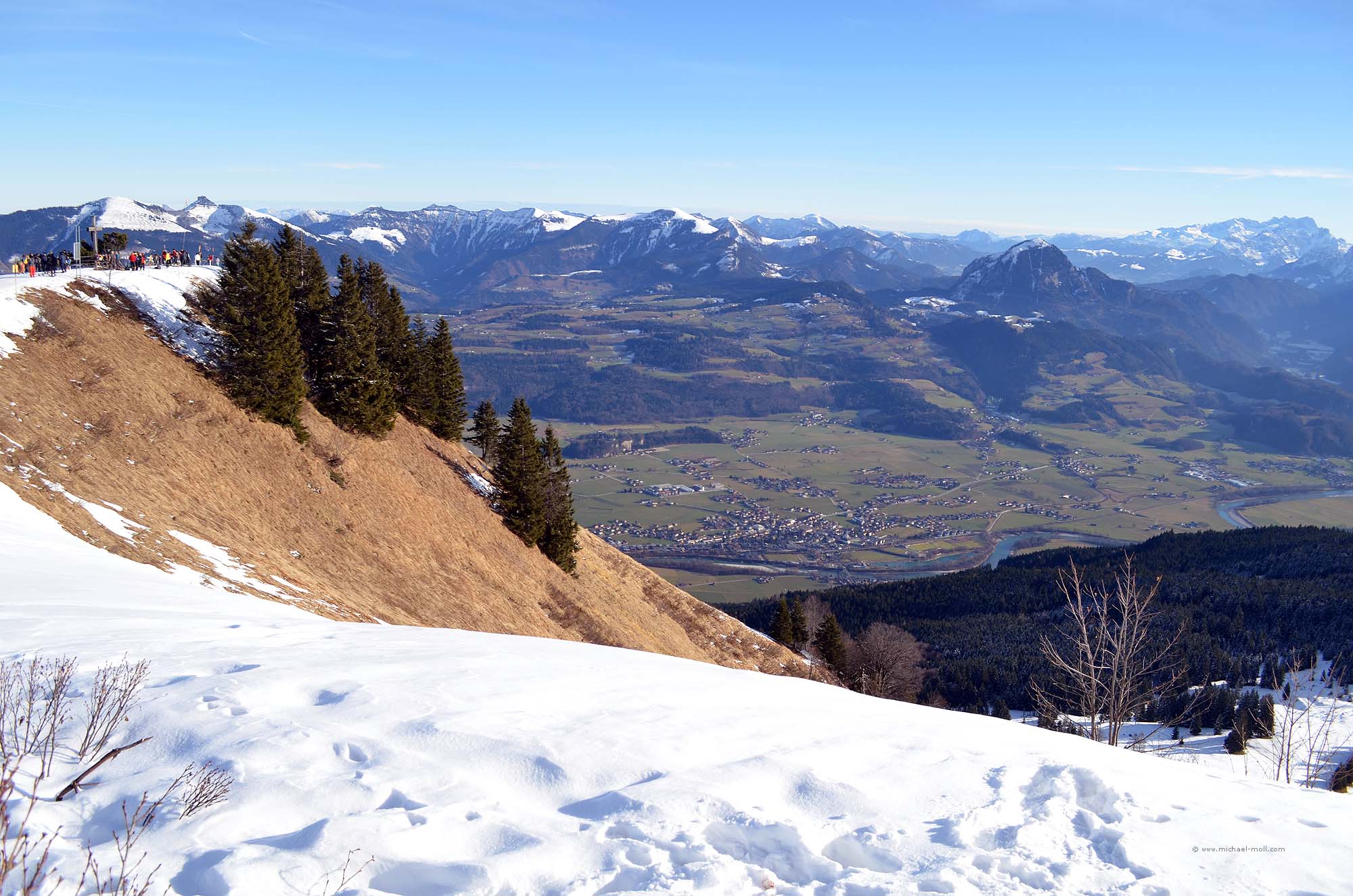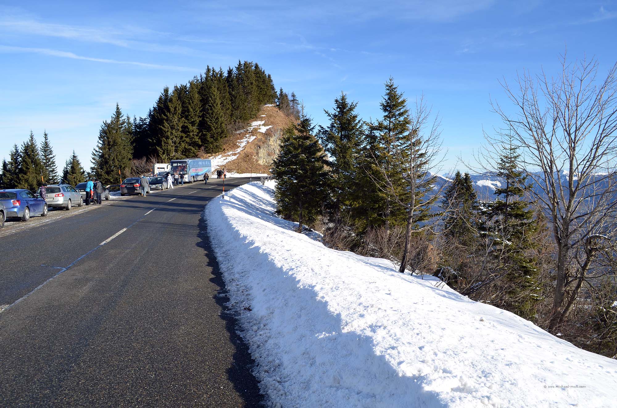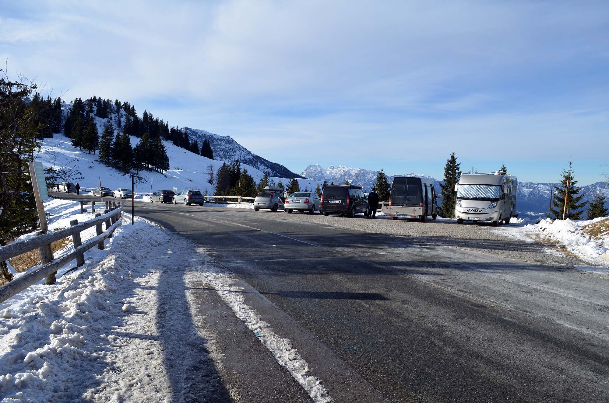Am nächsten Morgen gingen wir noch schnell zur Bäckerei, kauften uns ein paar leckere Kleinigkeiten, damit wir nicht wieder am späten Nachmittag auf Essbares hoffen mussten und fuhren weiter. Es folgte als Erstes die Skiregion Sudelfeld, auf der wir dabei zuschauen konnten, wie die Skifahrer die Pisten hinab wedeln.