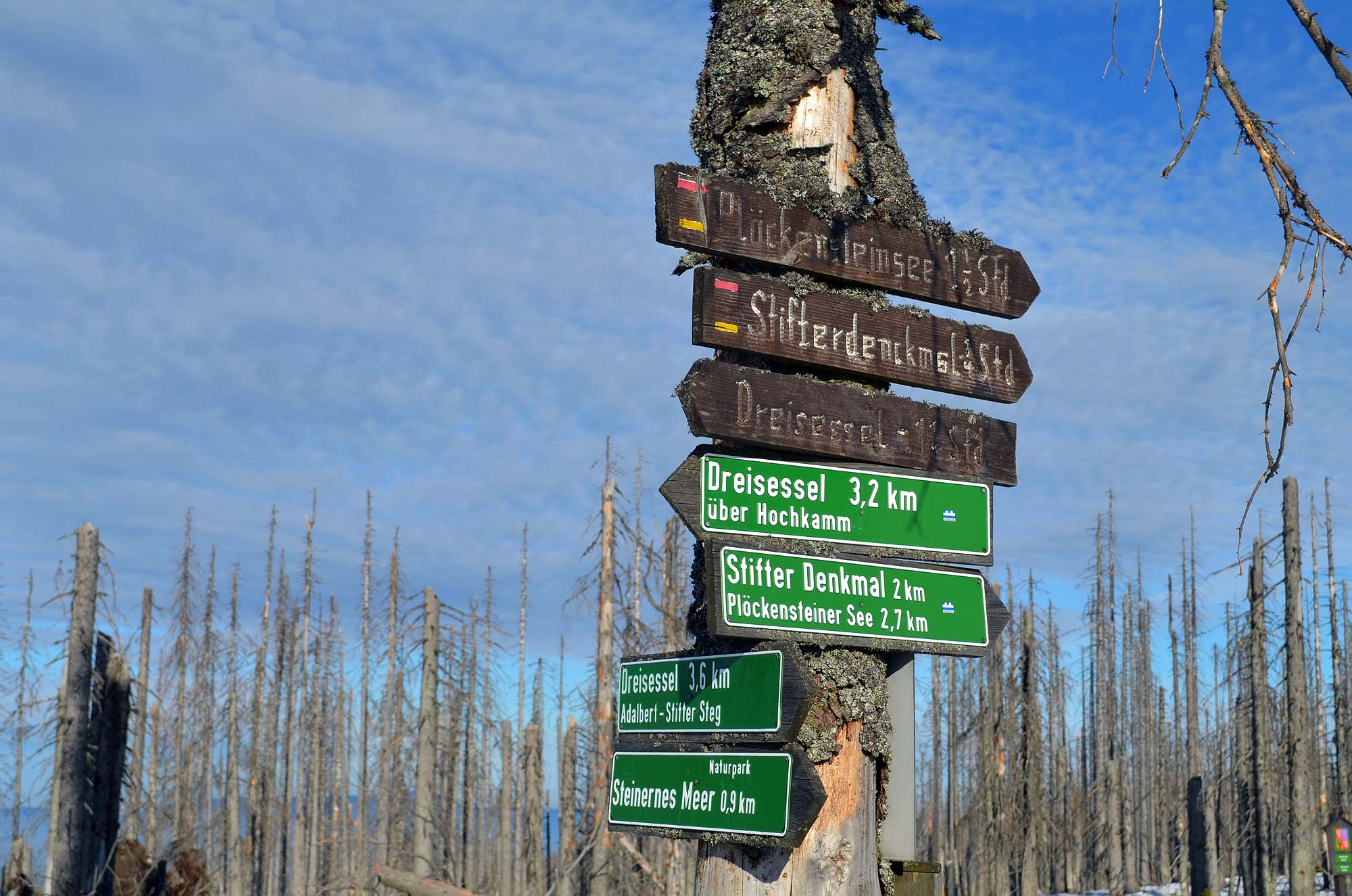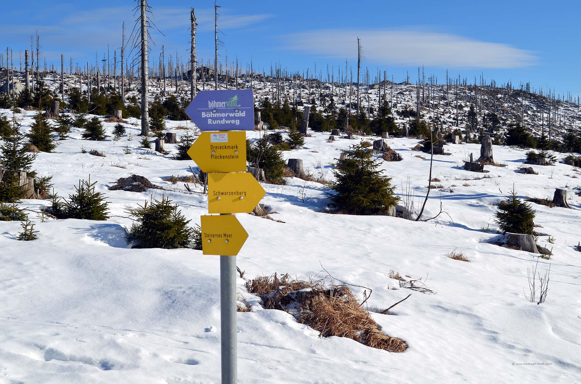 Wieder kam ich zu der Erkenntnis, dass das einfach nichts für mich ist. Davon abgesehen, dass ich nicht Skifahren kann, habe ich auch kein großes Interesse daran. Wir machten uns lieber auf den Weg zum Tatzlwurm. Hierbei handelt es sich um einen Wasserfall bzw. um eine kleine Schlucht. Zwei Wanderparkplätze hat der Tatzlwurm. Einen oberhalb und einen unterhalb des Gefälles. Und ich musste ausgerechnet den nehmen, der völlig vereist war. Halbwegs mit Schwung konnte ich noch auf den Wanderparkplatz fahren und neben einigen Baumstämmen stoppen. Doch ich hatte ein wenig den Eindruck, dass der Wagen auf dem abschüssigen Untergrund nicht wirklich stehen, sondern noch rutschen würde. Also stellten wir den Wagen um, bevor wir uns zu einer kleinen Wanderung zum Wasserfall aufmachten. Sicher ist sicher. Wie wir nachher von dem vereisten Parkplatz hinunterkommen würden, sollte unser späteres Problem sein. Erstmal wollten wir den Wasserfall ausreichend fotografieren und bestaunen.